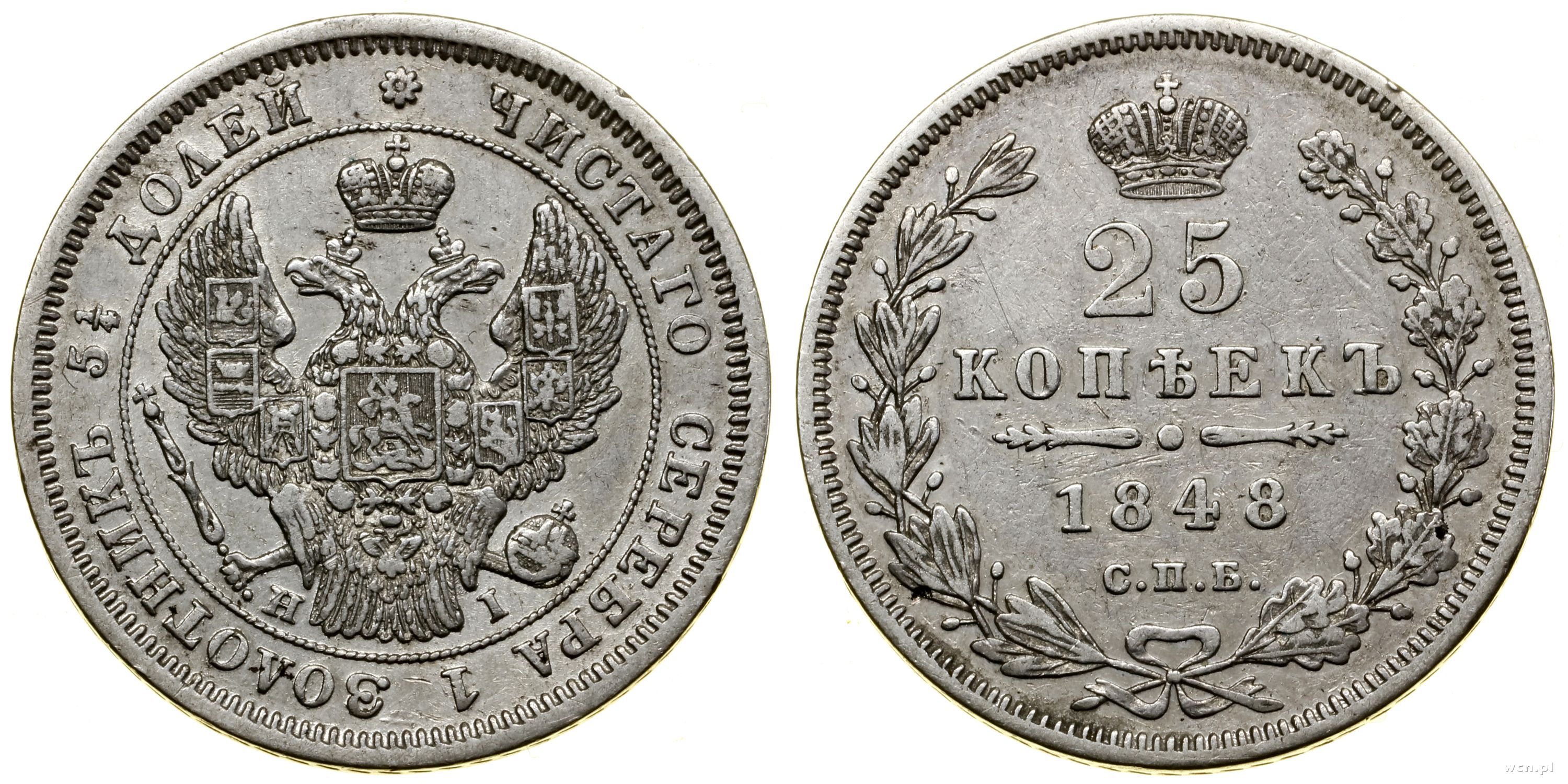 Rosja, 25 kopiejek, 1848 СПБ HI