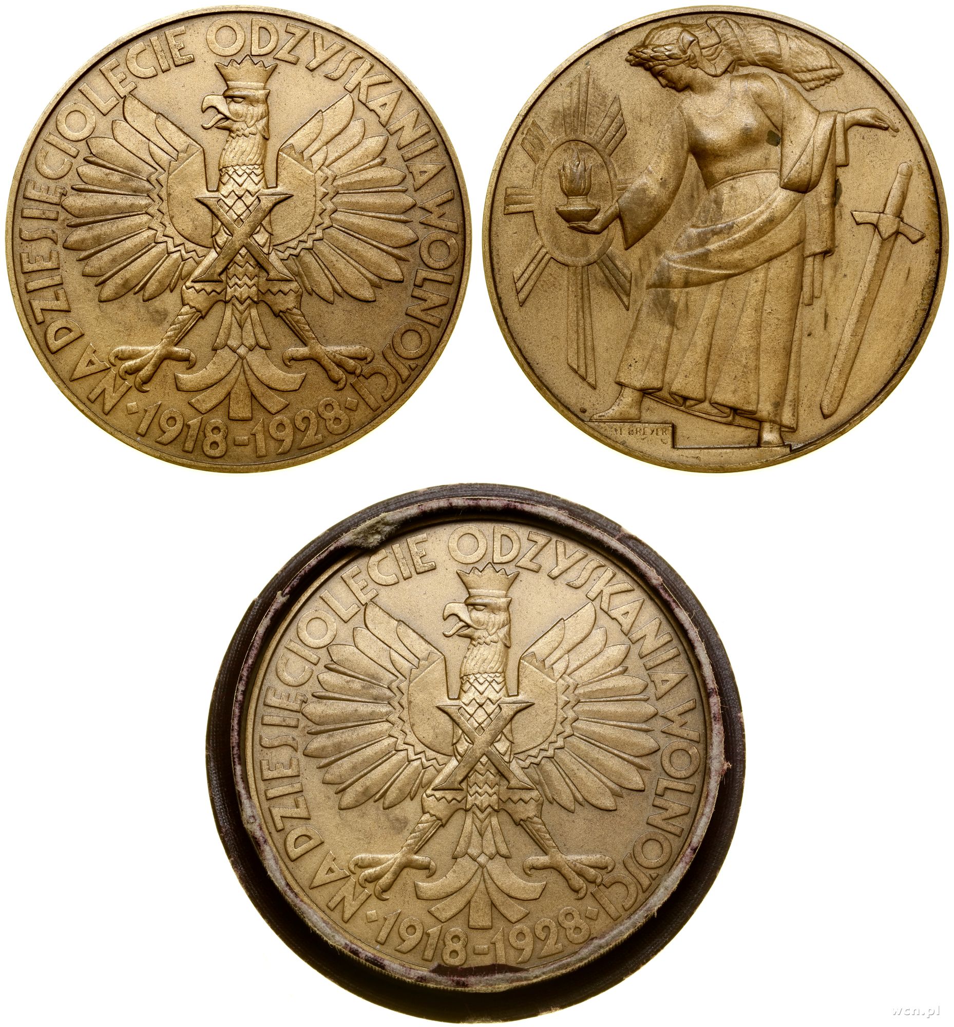 Aw: Orzeł z cyfrą X na piersi, wokół NA DZIESIĘCIOLECIE O... | I-/II+ |