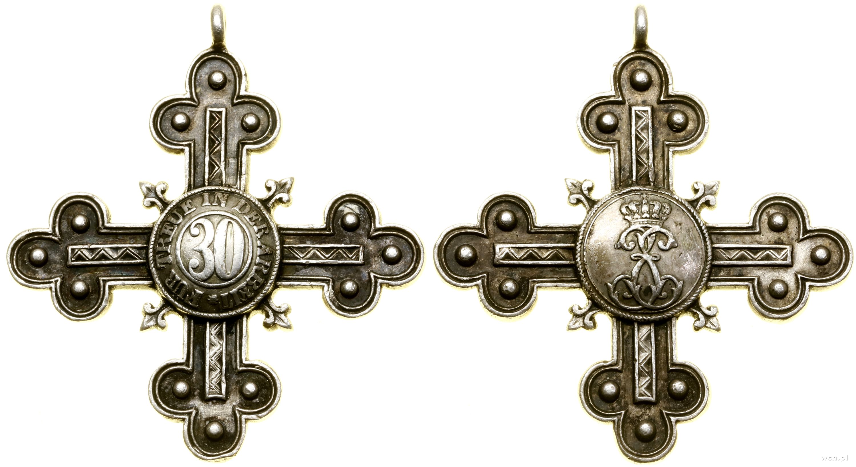 Krzyż z ramionami zakończonymi trójliśćmi, w medalinie 30... | II |