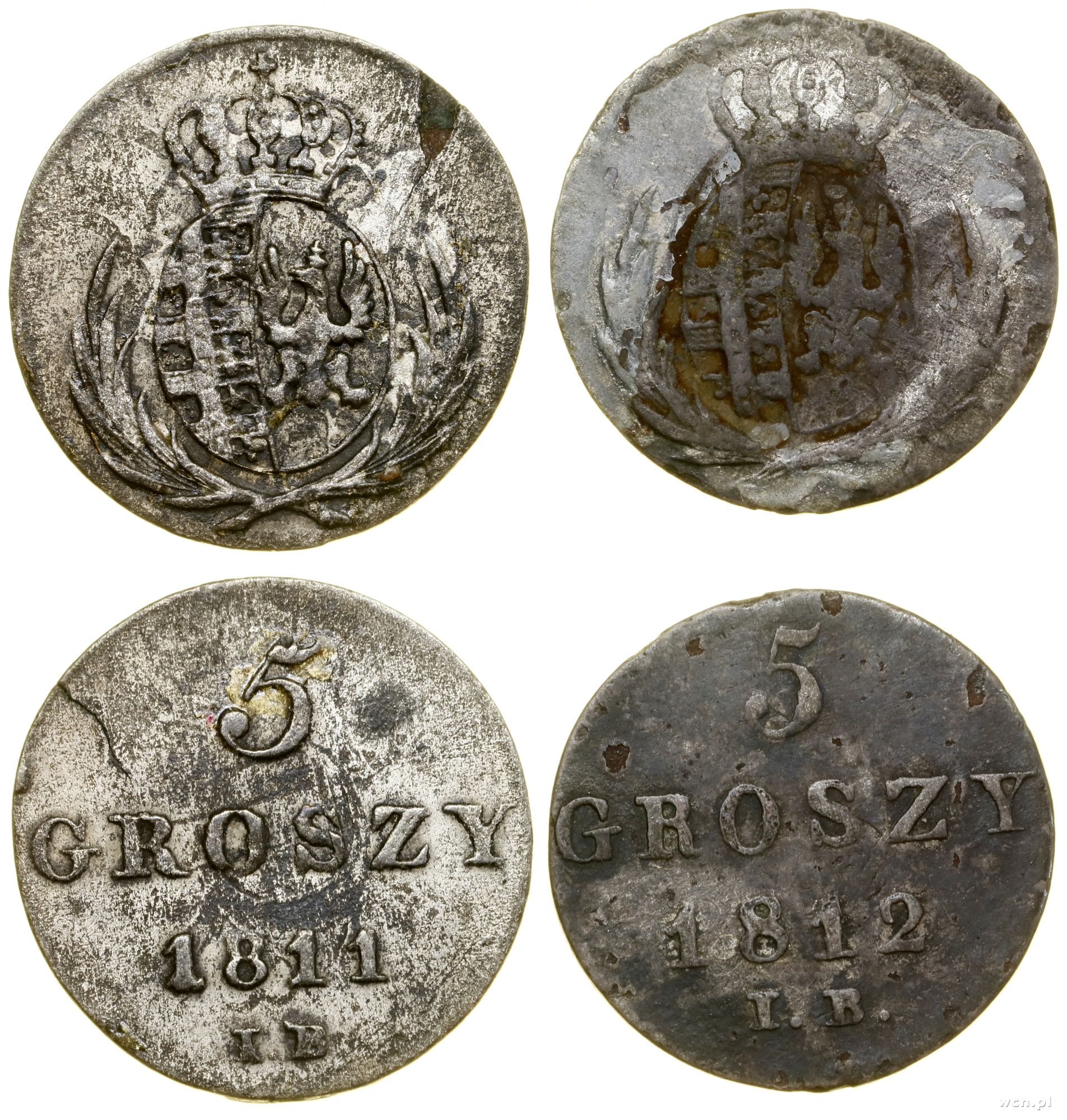 Polska, zestaw: 5 groszy 1811 i 5 groszy 1812