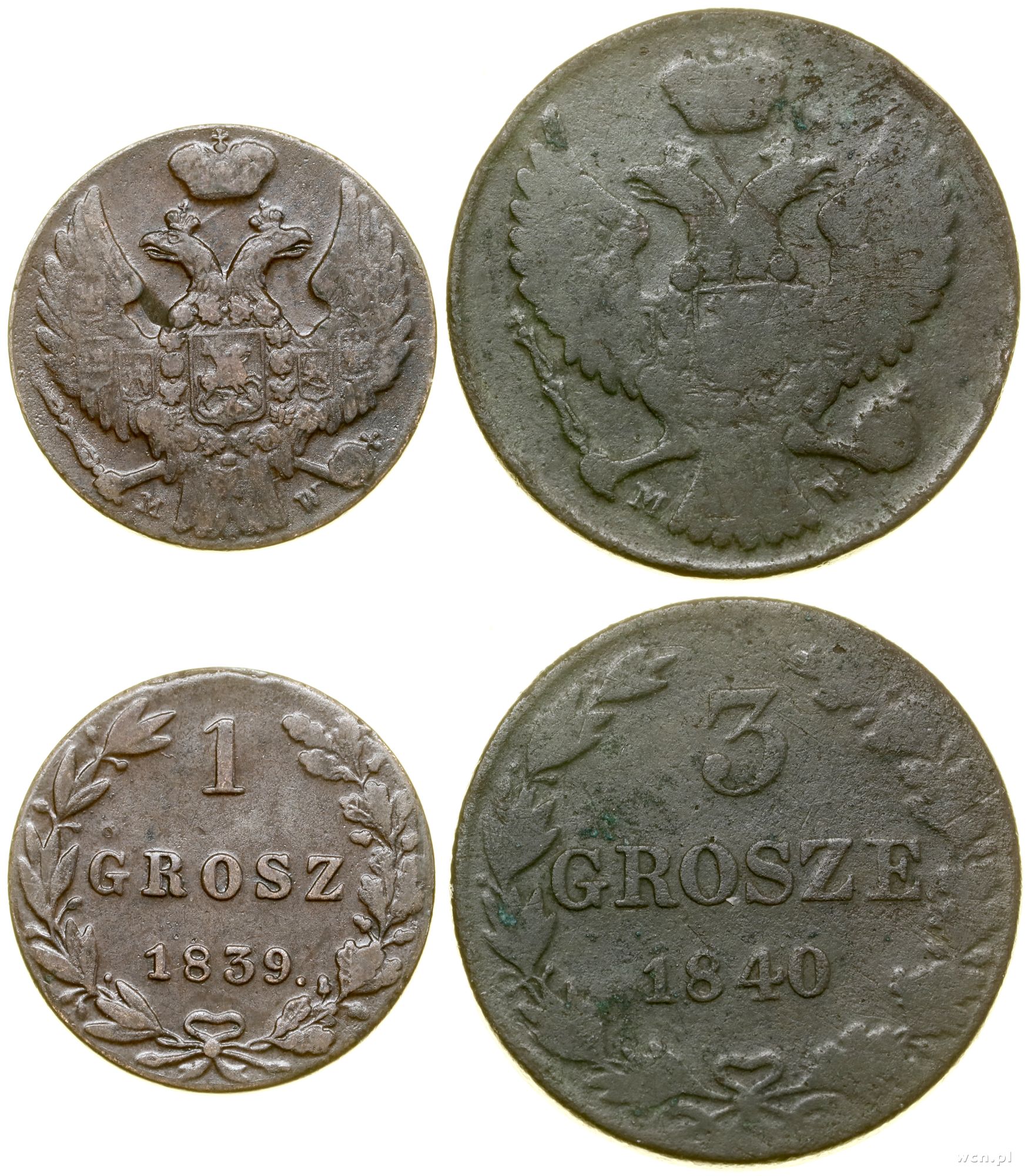w skład zestawu wchodzi: 3 grosze polskie 1840 MW i grosz... | III+/IV |