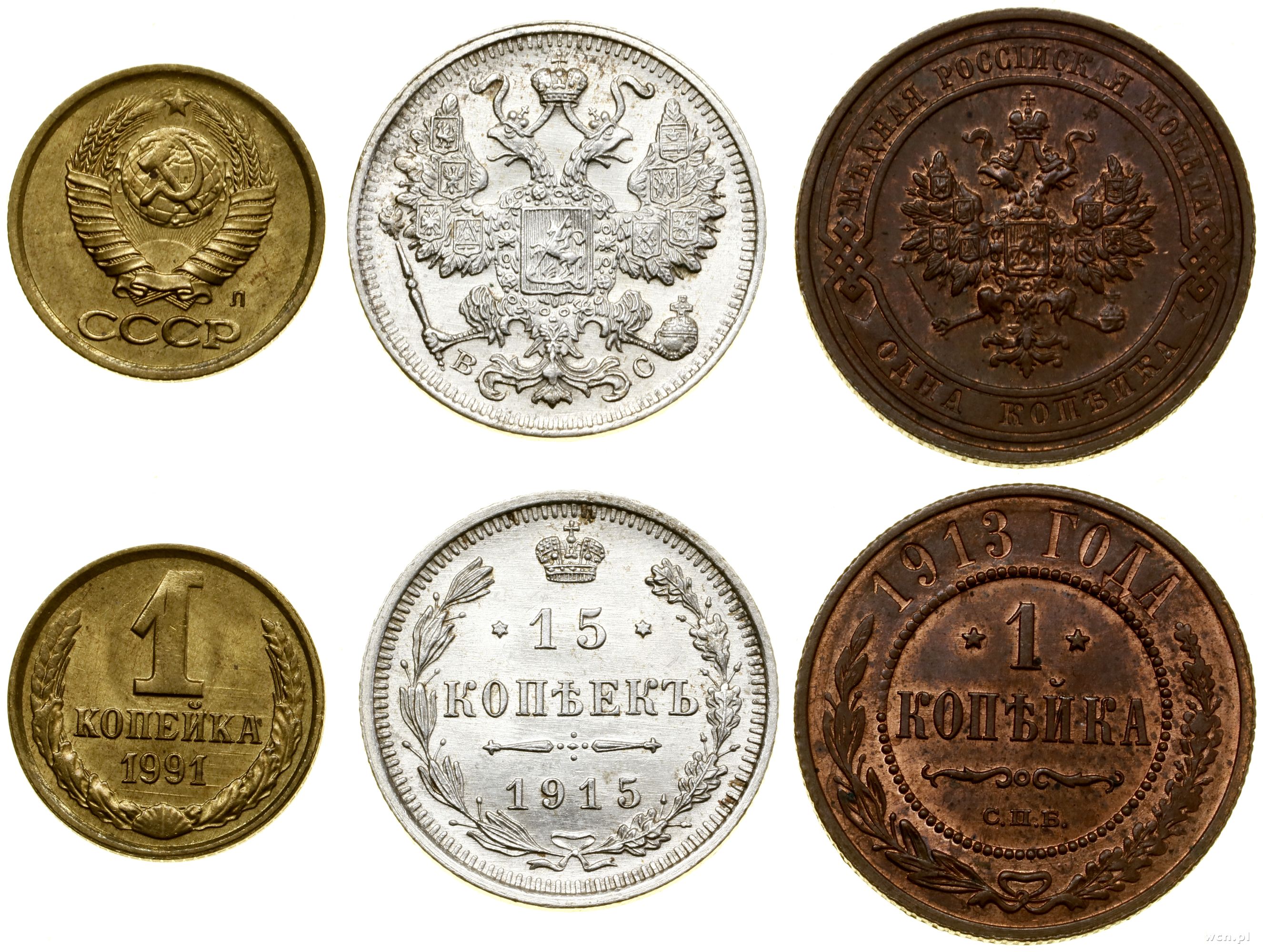 1) 1 kopiejka 1913 СПБ 2) 15 kopiejek 1915 BC 3) 1 kopiej... | I |