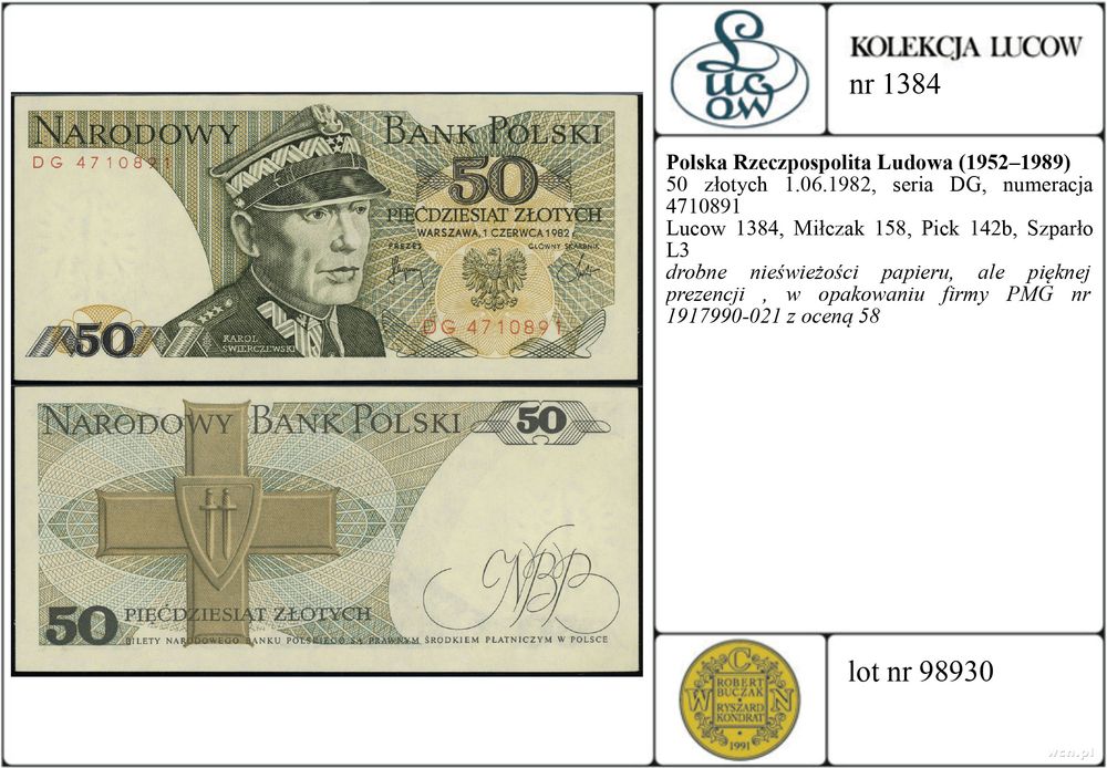 | Opis: | Polska - Polska Rzeczpospolita Ludowa (1952–1989), 50 złotych, 1.06.1982, seria DG, numeracja 4710891 |