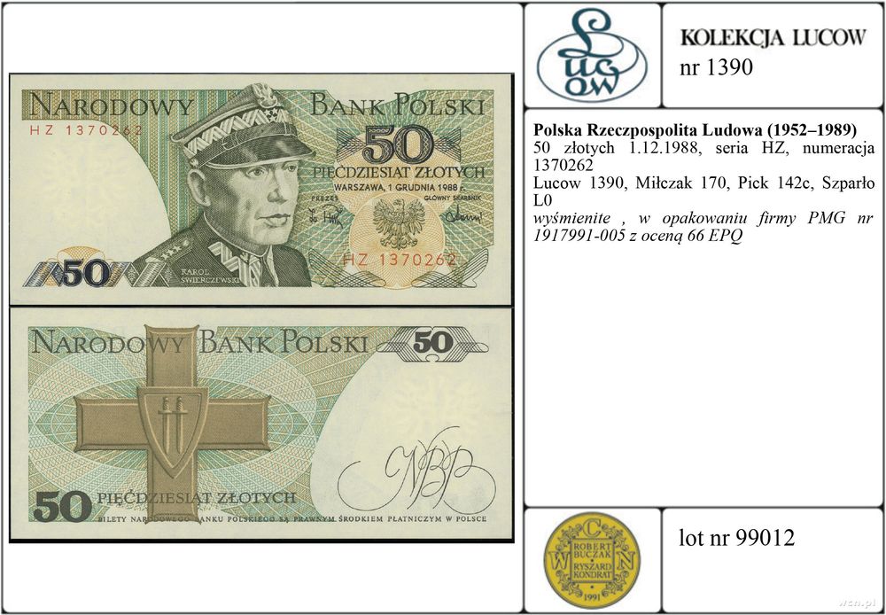 | Opis: | Polska - Polska Rzeczpospolita Ludowa (1952–1989), 50 złotych, 1.12.1988, seria HZ, numeracja 1370262 |