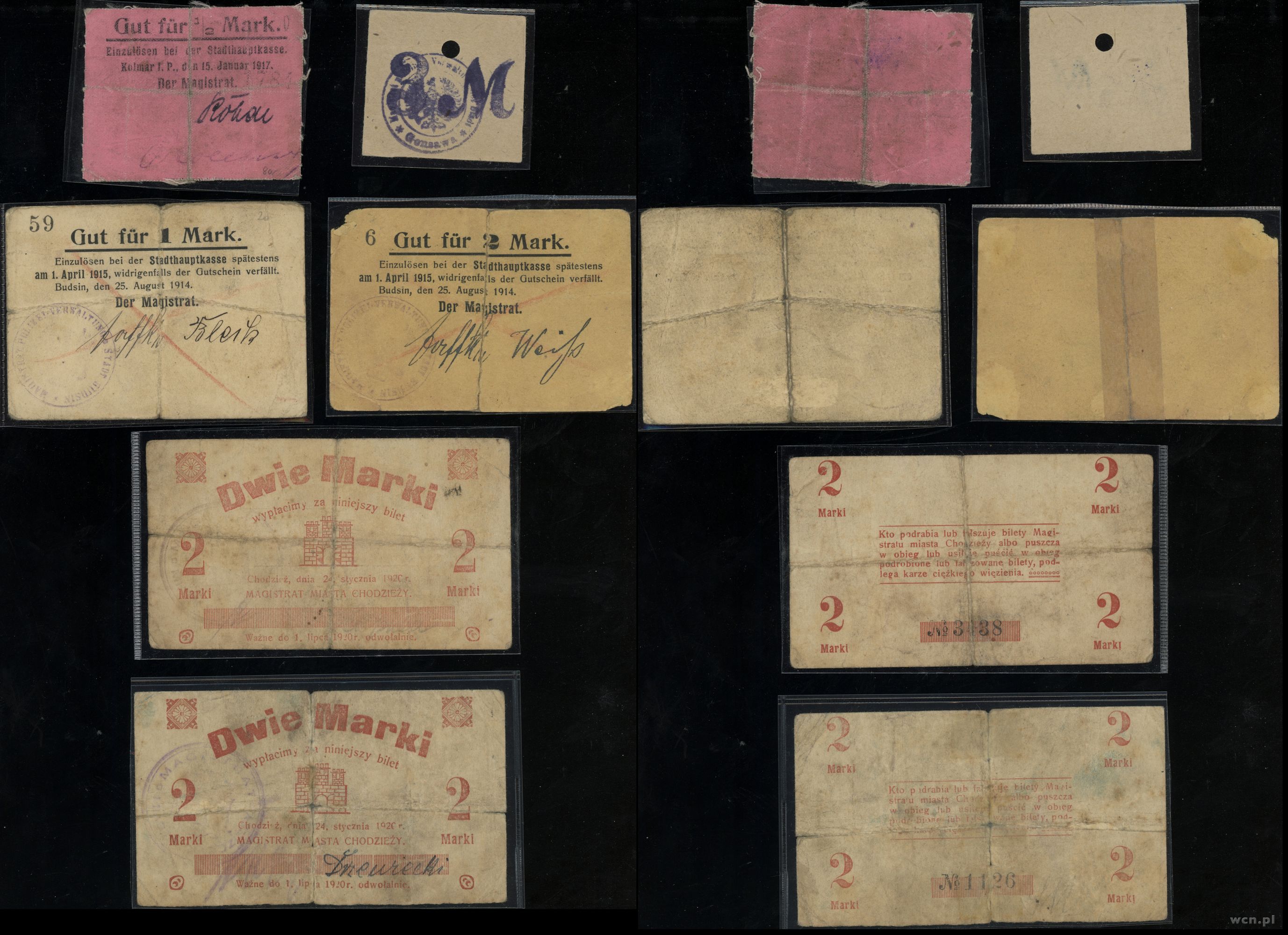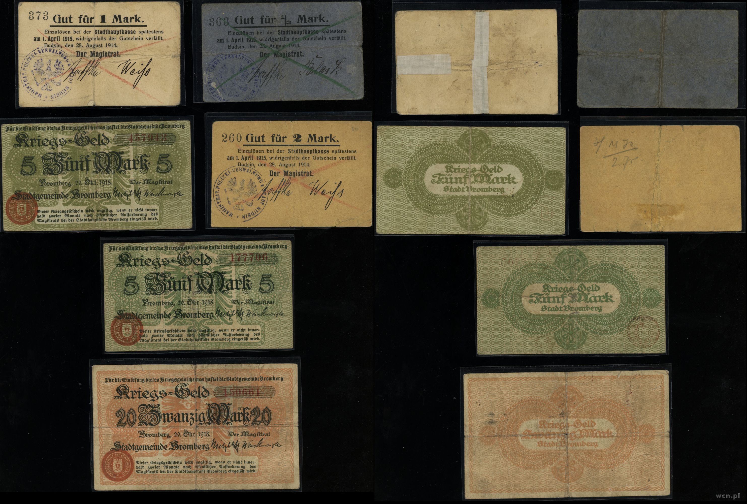 1) 1/2 marki 1914 Budzyń 2) 1 marka 1914 Budzyń 3) 2 mark... | IV |