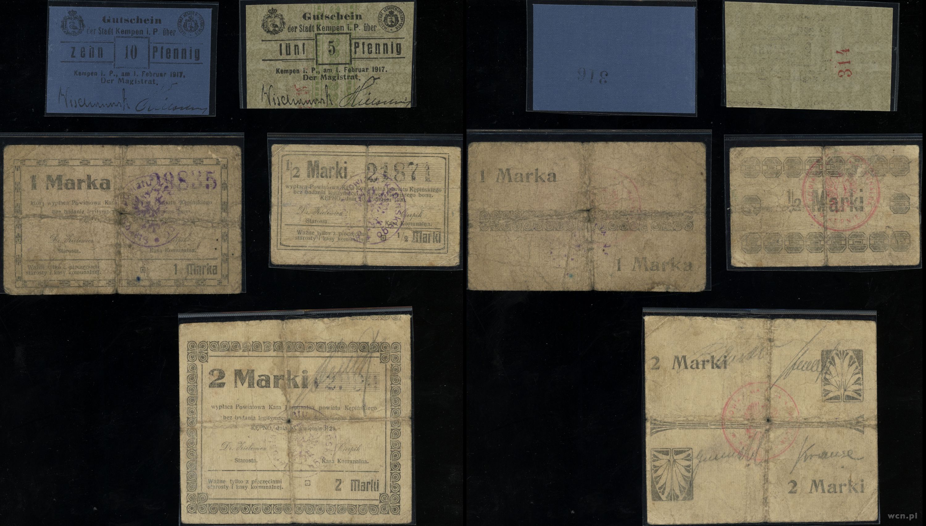 1) 5 fenigów 1917 2) 10 fenigów 1917 (płótno) 3) 1/2 mark... | I-/V |