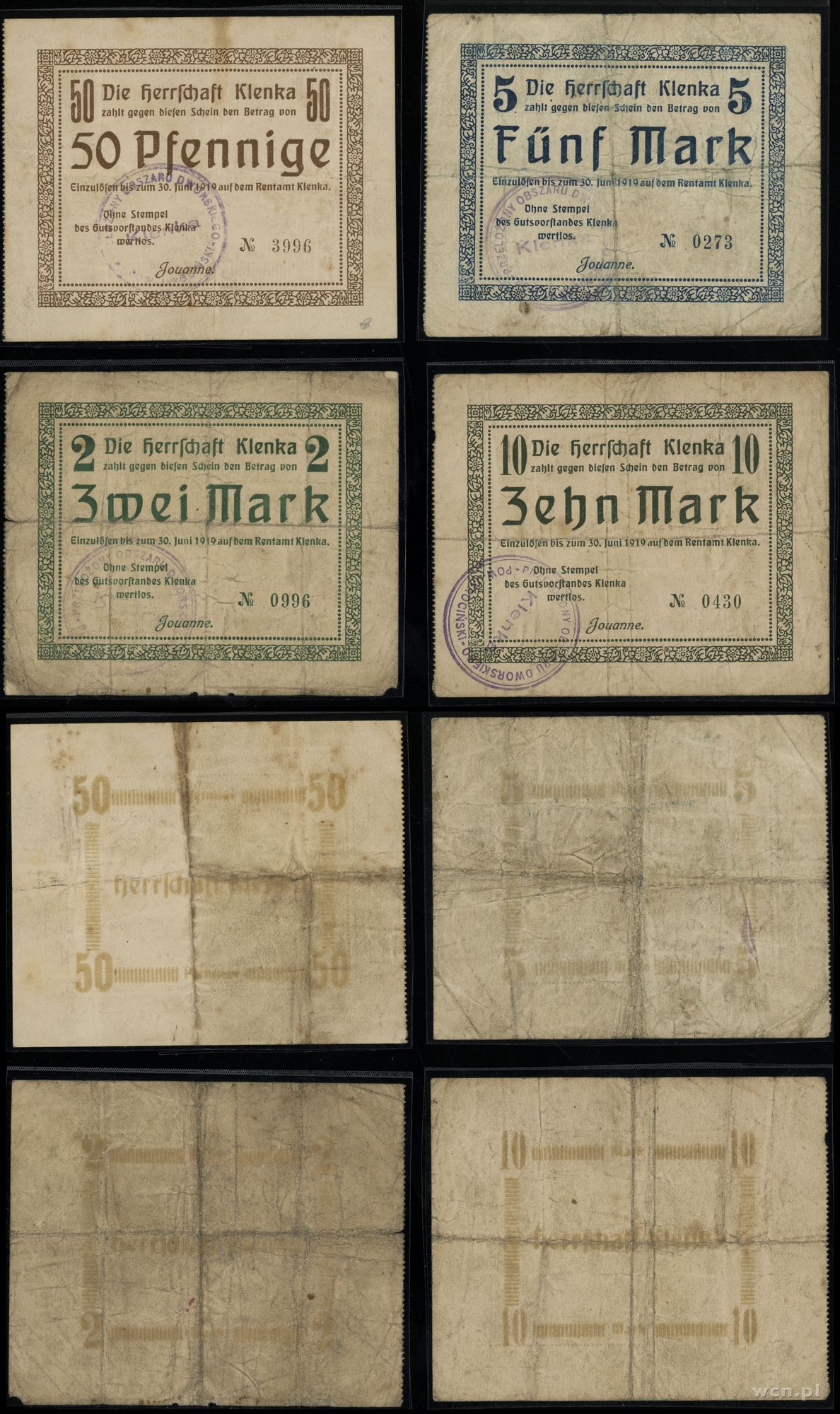 Wielkopolska, zestaw 4 banknotów, 1919