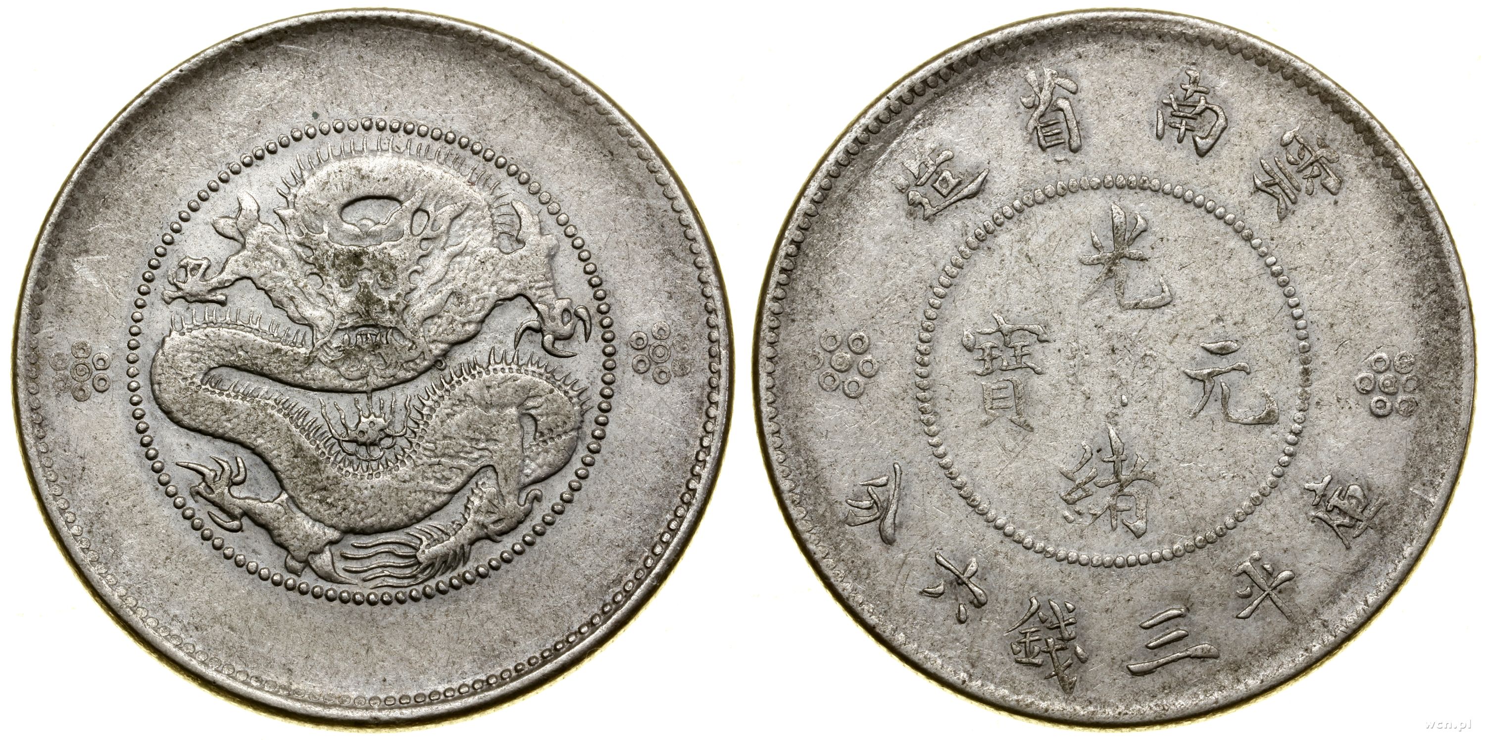 Chiny, 50 centów (3 mace i 6 kandarynów), 1908
