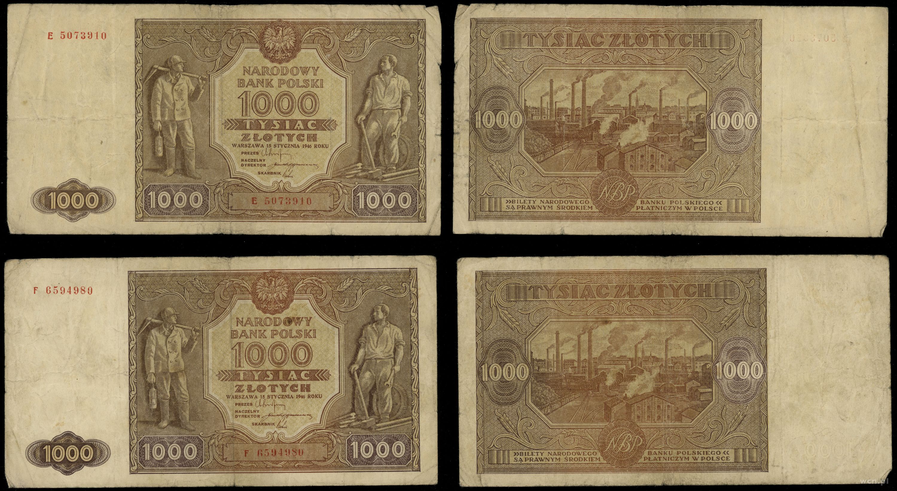 Polska, zestaw: 2 x 1.000 złotych, 15.01.1946