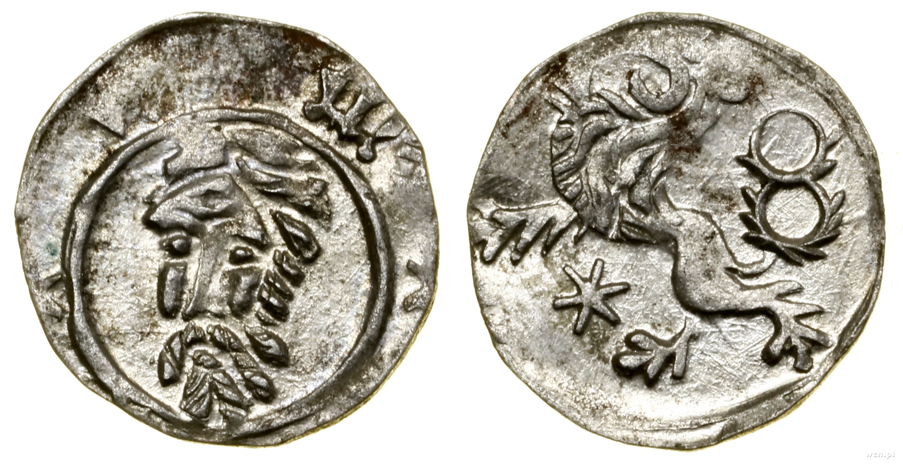 Aw: Głowa króla w koronie z długimi włosami, na wprost, l... | III- |