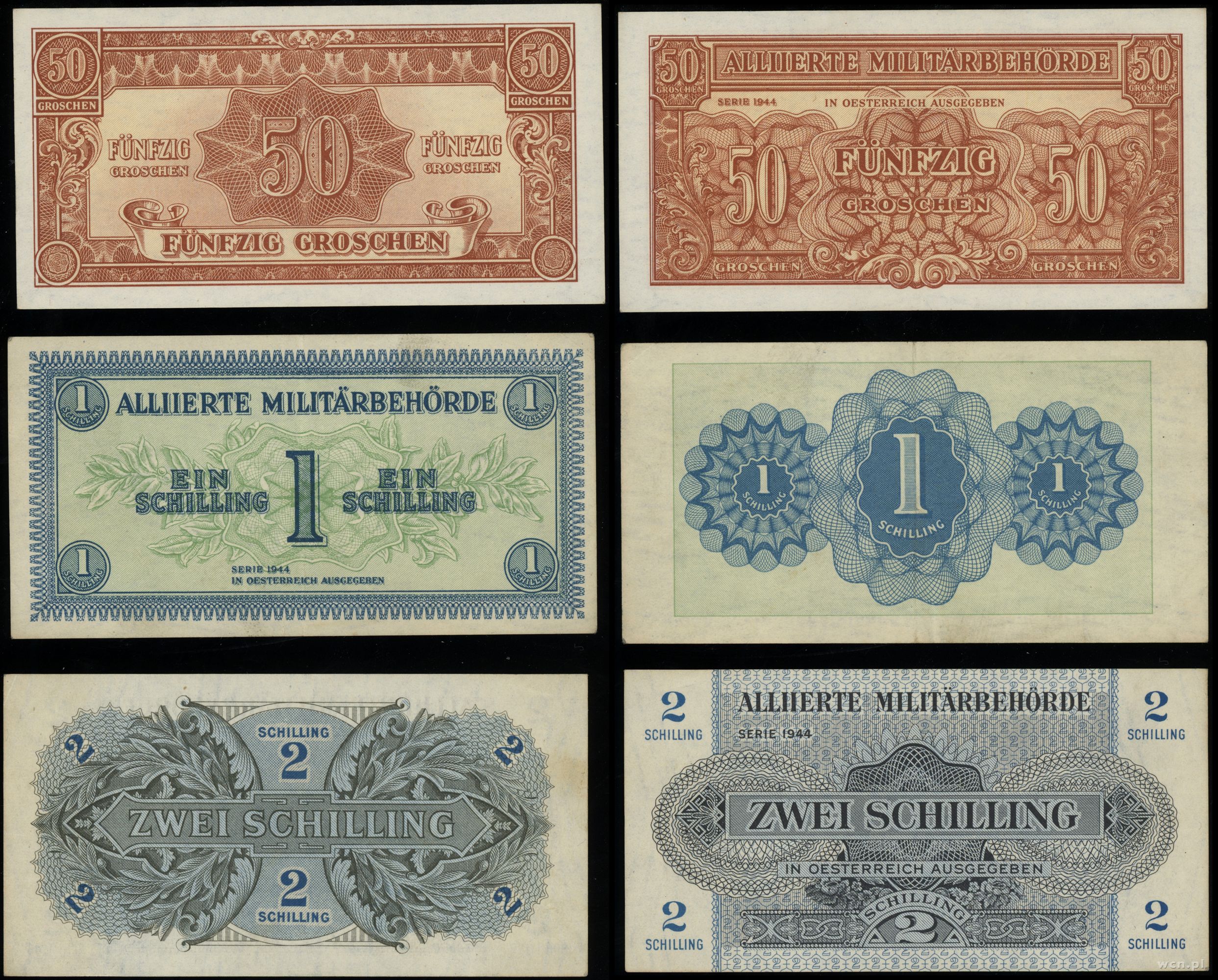 Austria, zestaw 6 banknotów, 1944