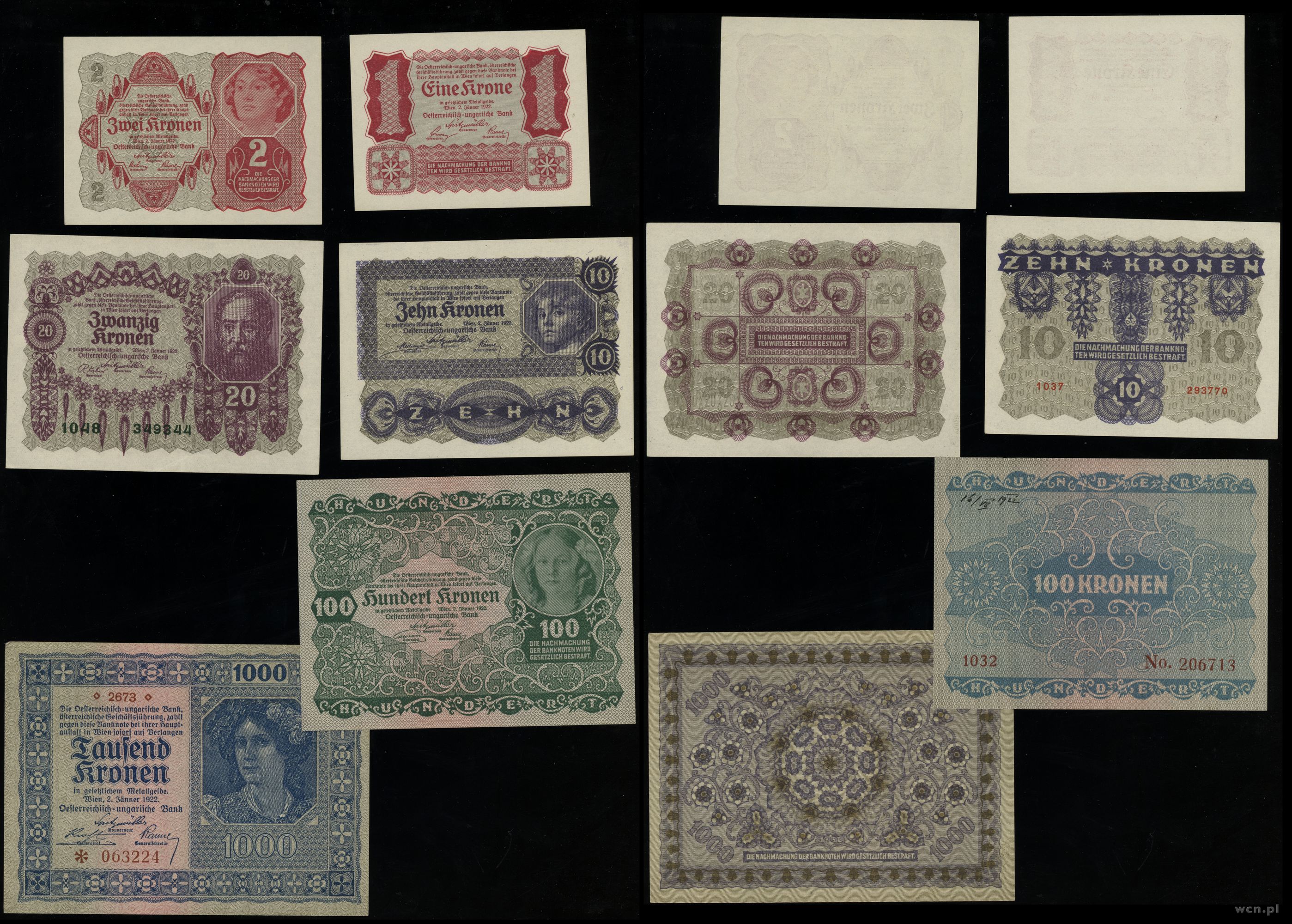 Austria, zestaw 6 banknotów, 2.01.1922