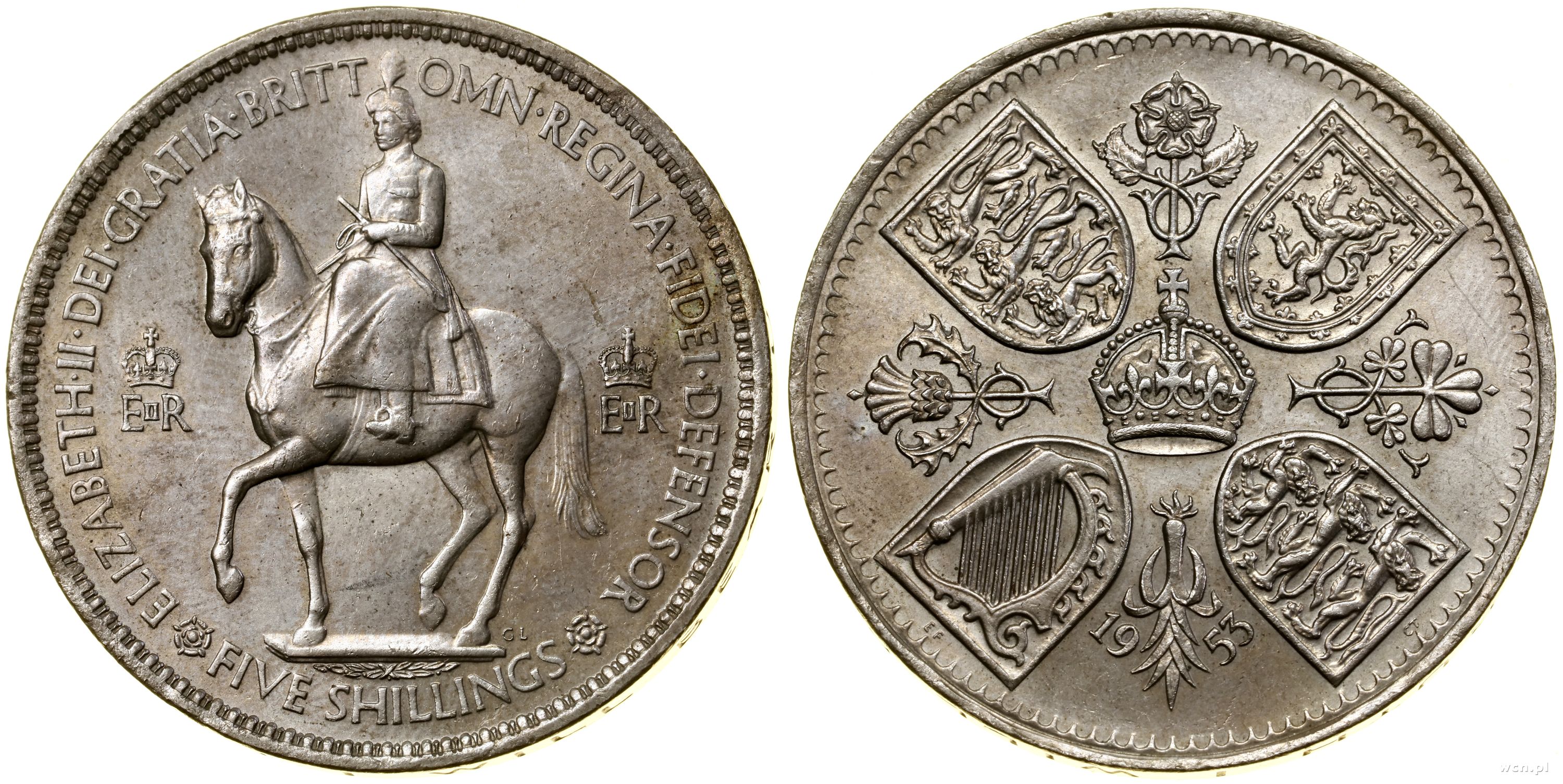 Wielka Brytania, 5 szylingów (korona koronacyjna), 1953