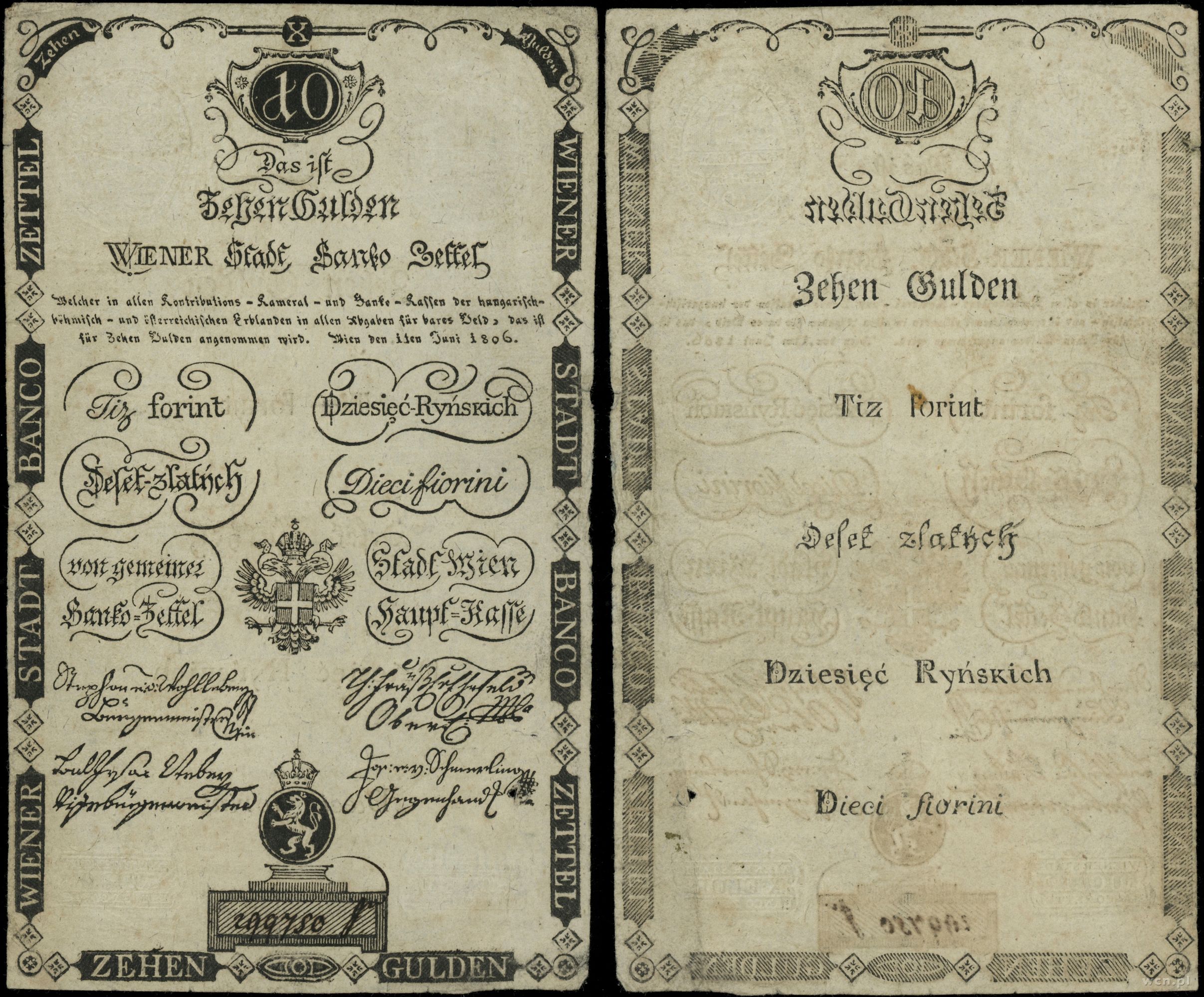 Austria, 10 guldenów (10 ryńskich), 1.06.1806