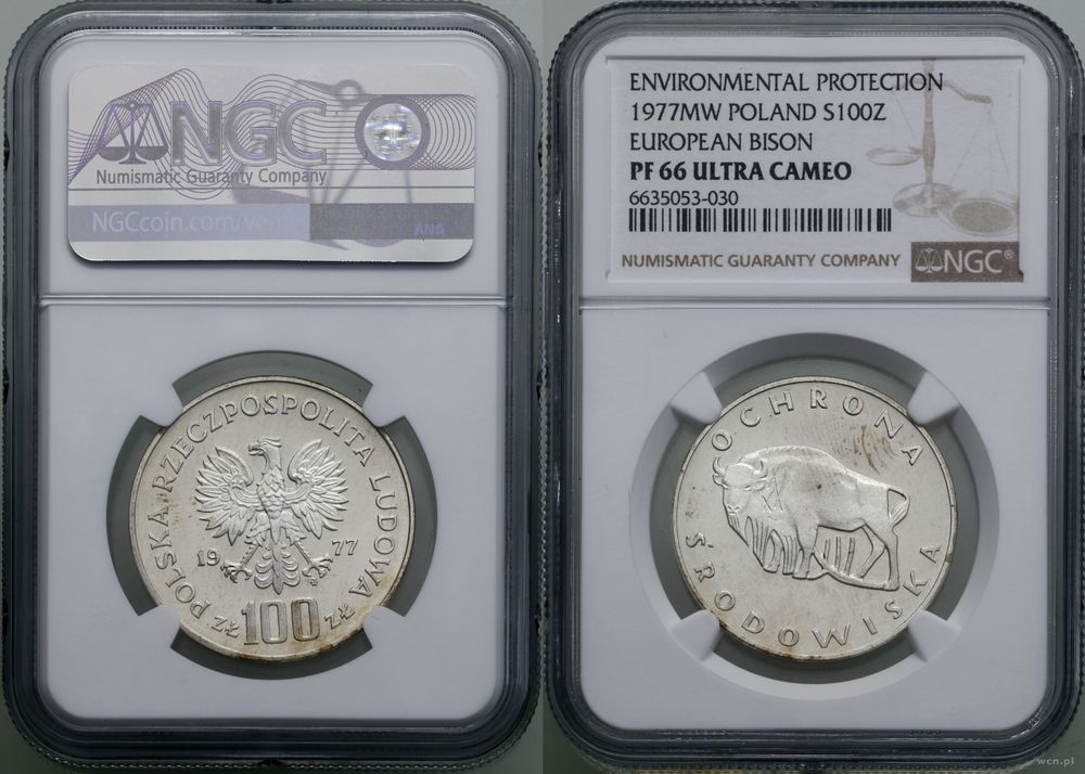 | Opis: | Polska - Polska Rzeczpospolita Ludowa (1952–1989) - monety obiegowe i kolekcjonerskie, 100 złotych, 1977, Warszawa, Ochrona środowiska – Żubr |