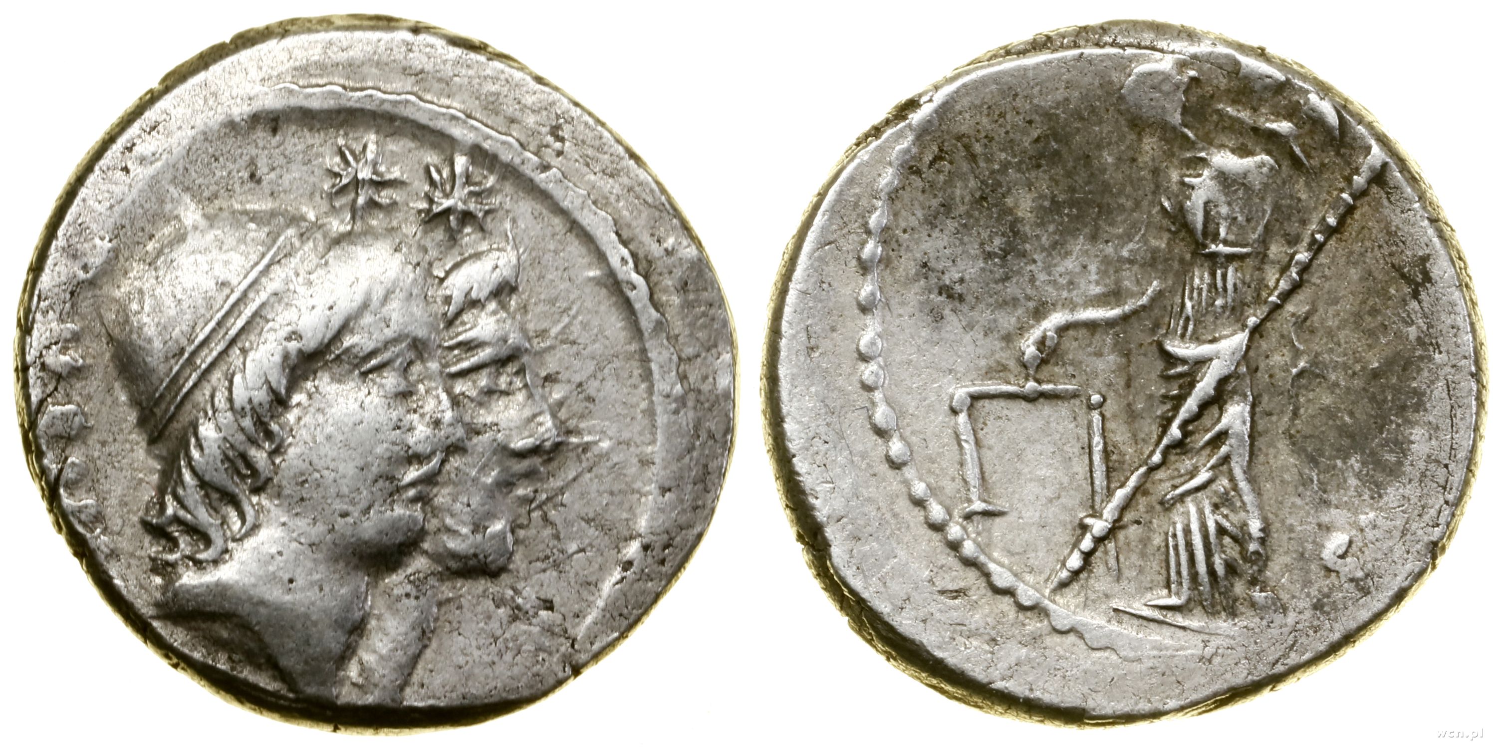 Aw: Głowa Romy w hełmie w prawo, z lewej X, Rw: Dioskurow... | III/III- |