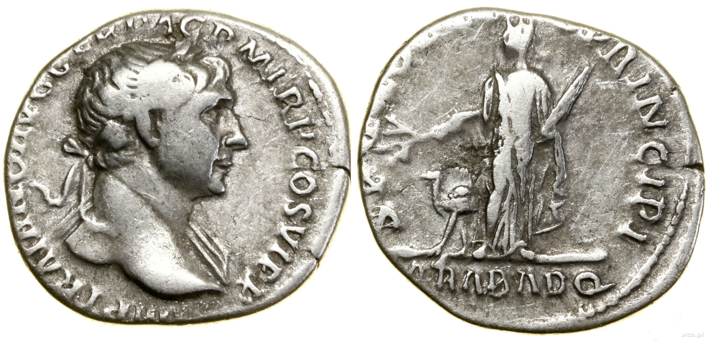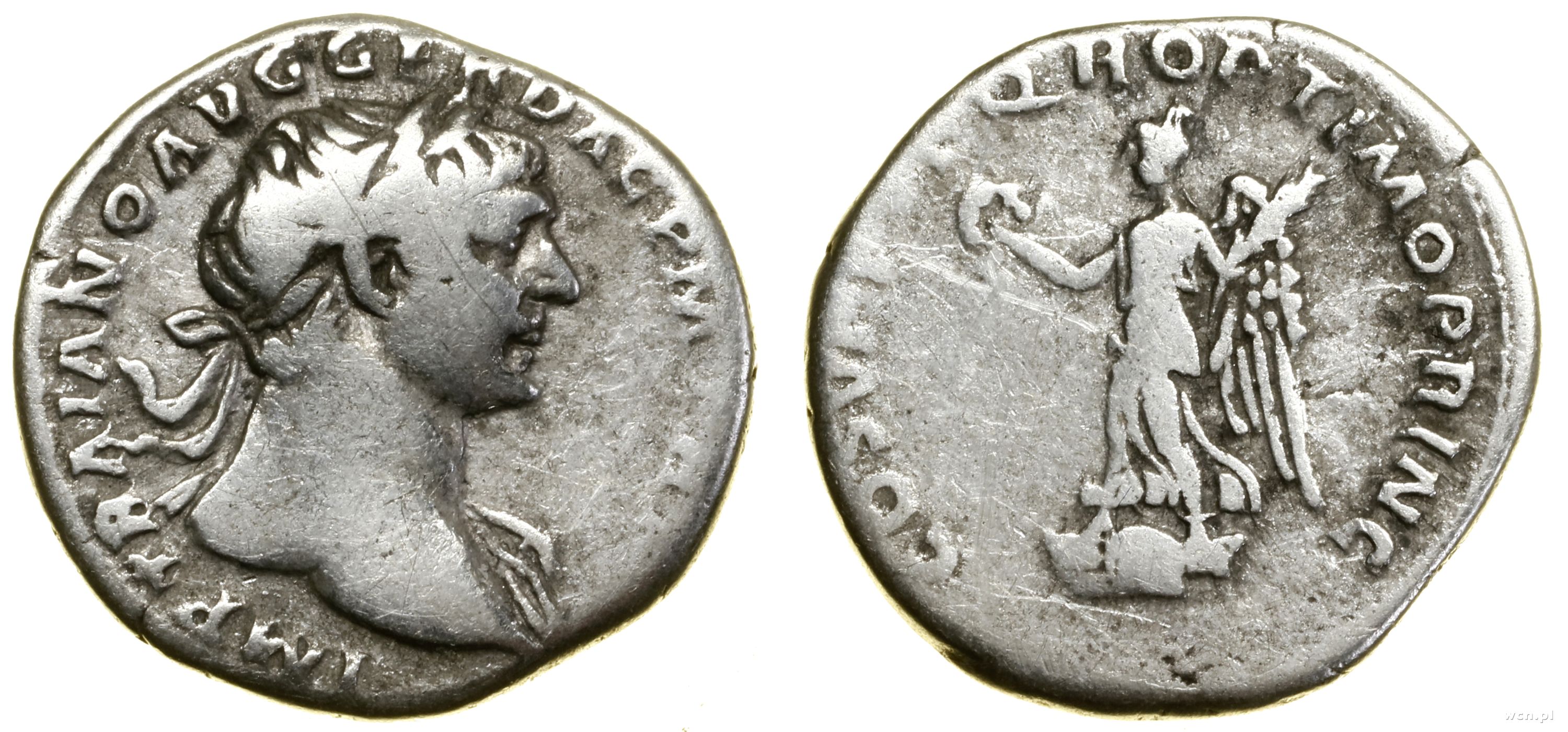 Aw: Głowa cesarza w wieńcu laurowym w prawo, IMP TRAIANO ... | III-/IV+ |