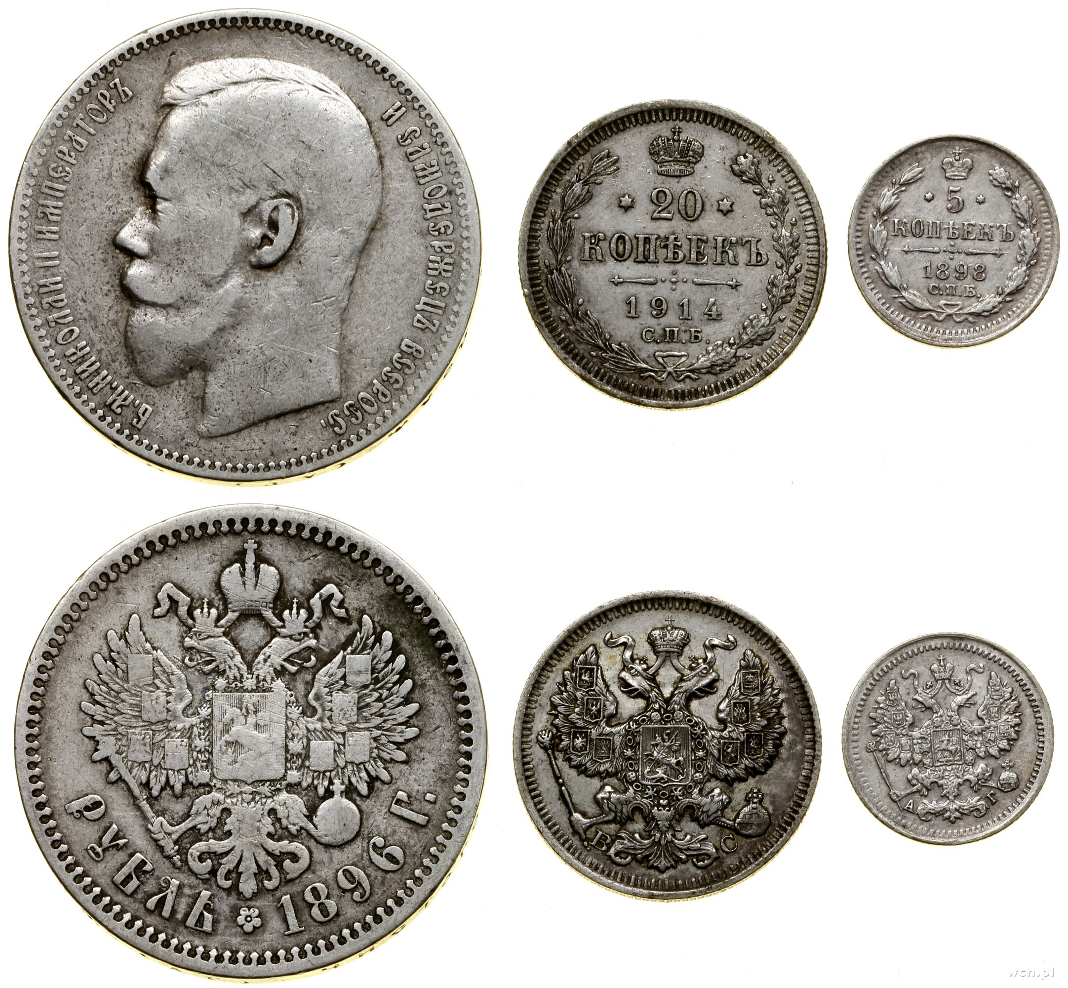 1) rubel 1896 АГ, Petersburg 2) 20 kopiejek 1914 BC, Pete... | II-/IV+ |
