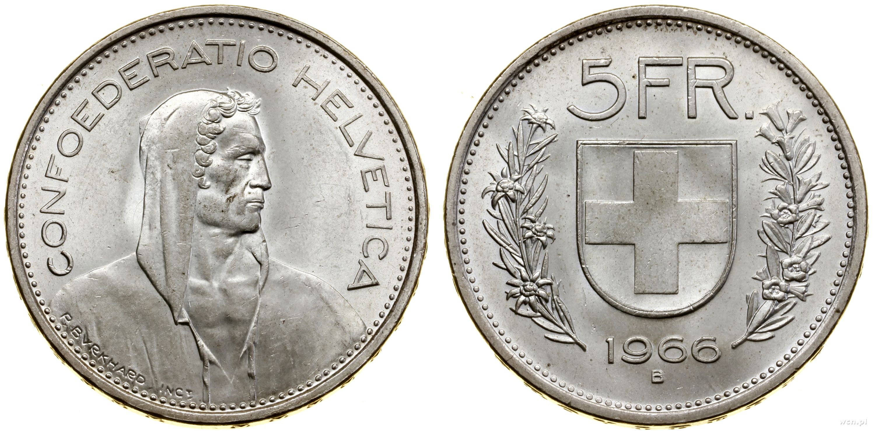Szwajcaria, 5 franków, 1966 B