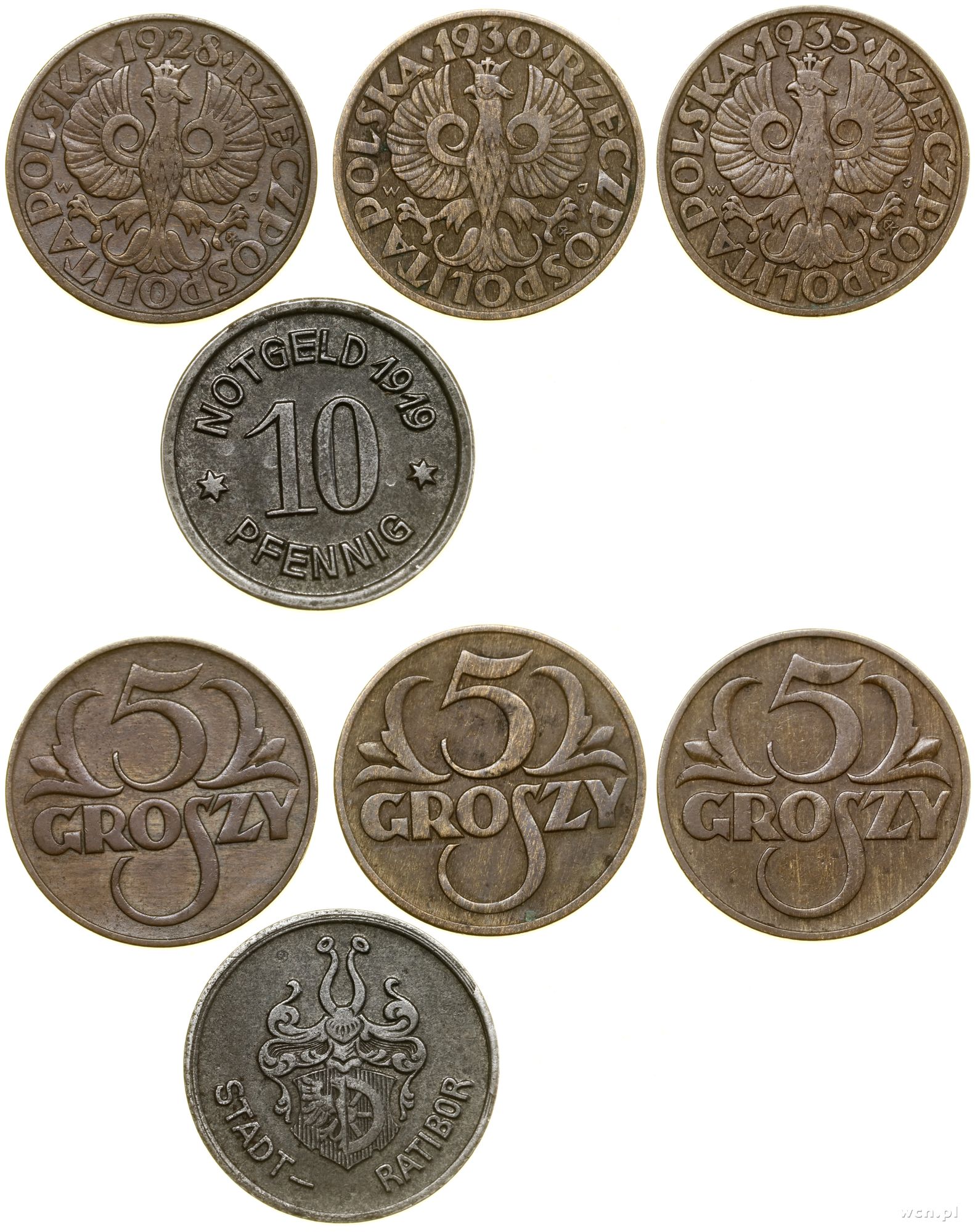 1) 3 x 5 groszy (1928, 1930, 1935) Warszawa 2) 10 fenigów... | II/III |