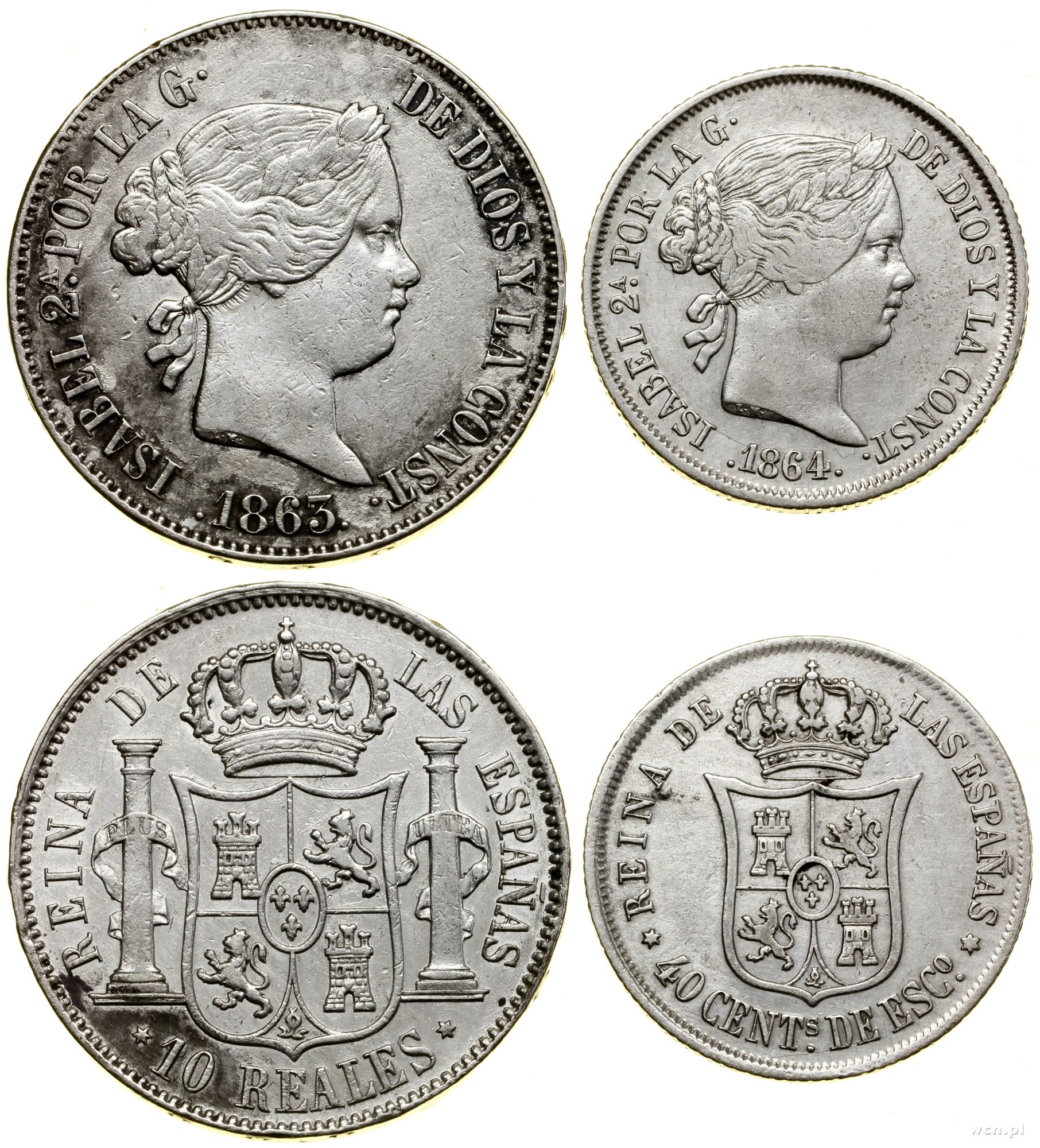 w skład zestawu wchodzi: 40 centymów 1864 (Madryt), 10 re... | III |