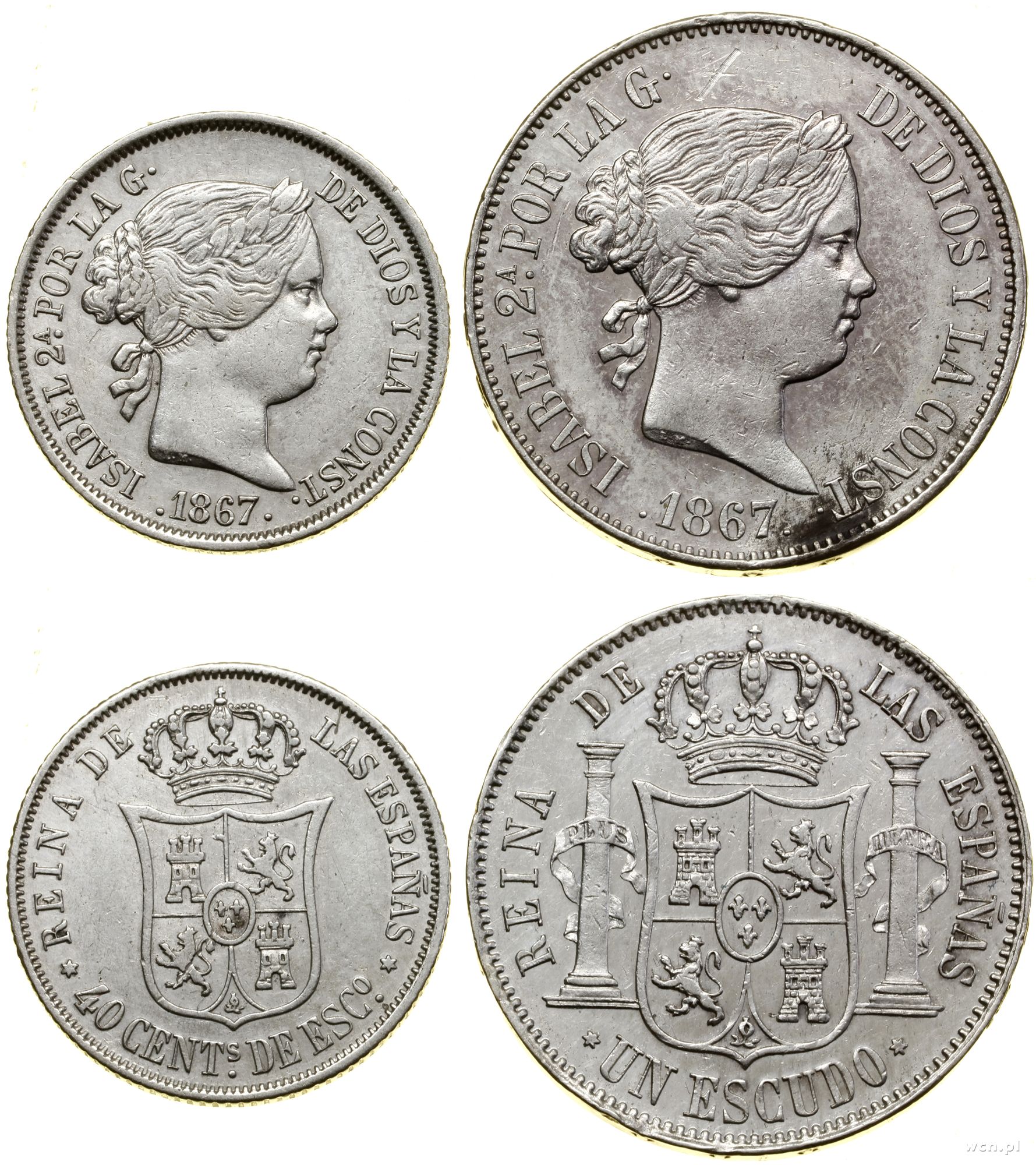 w skład zestawu wchodzi: 40 centymów 1867 (Madryt), 1 esc... | III+ |