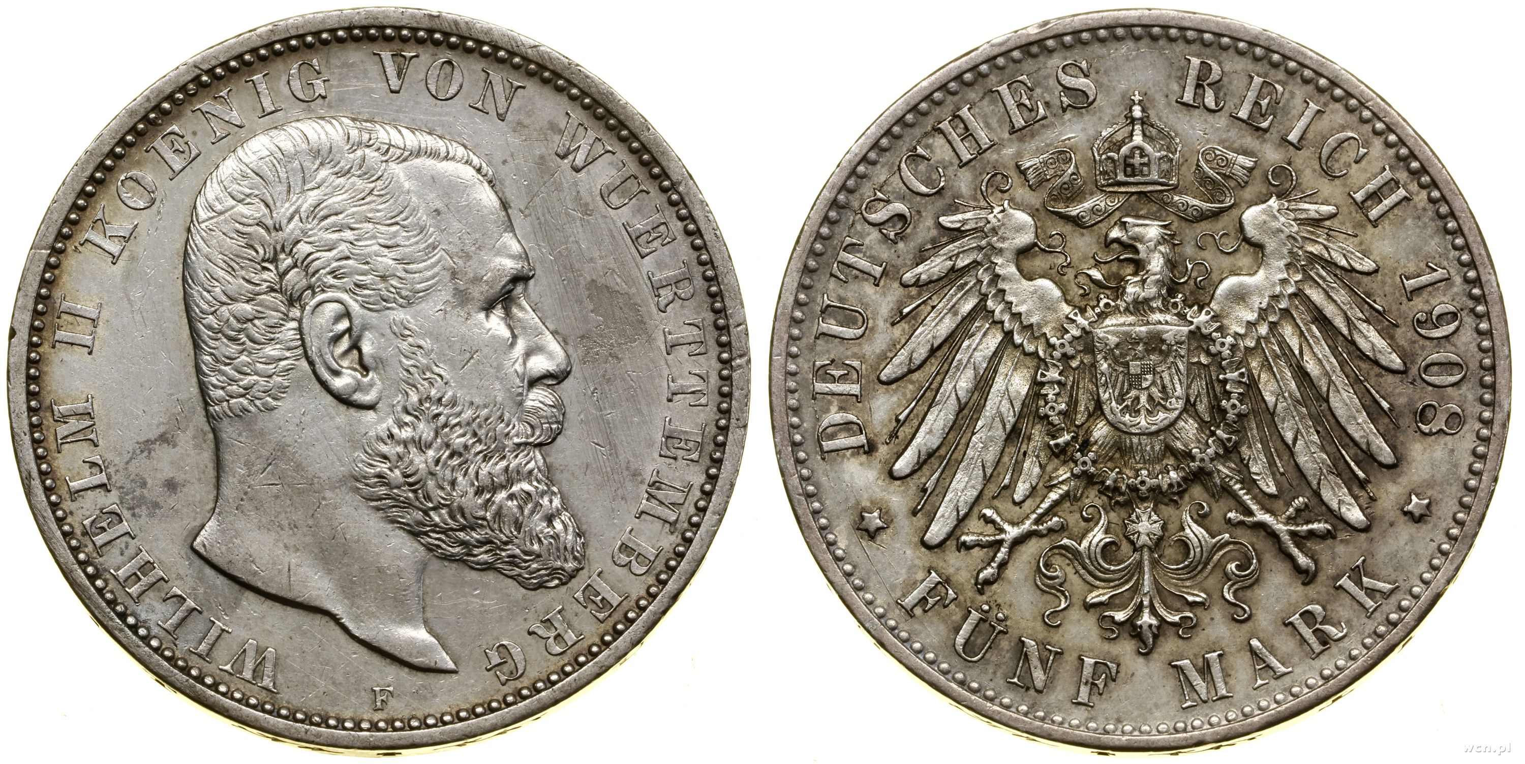 Niemcy, zestaw 2 x 3 marki, 1908 F, 1909 F