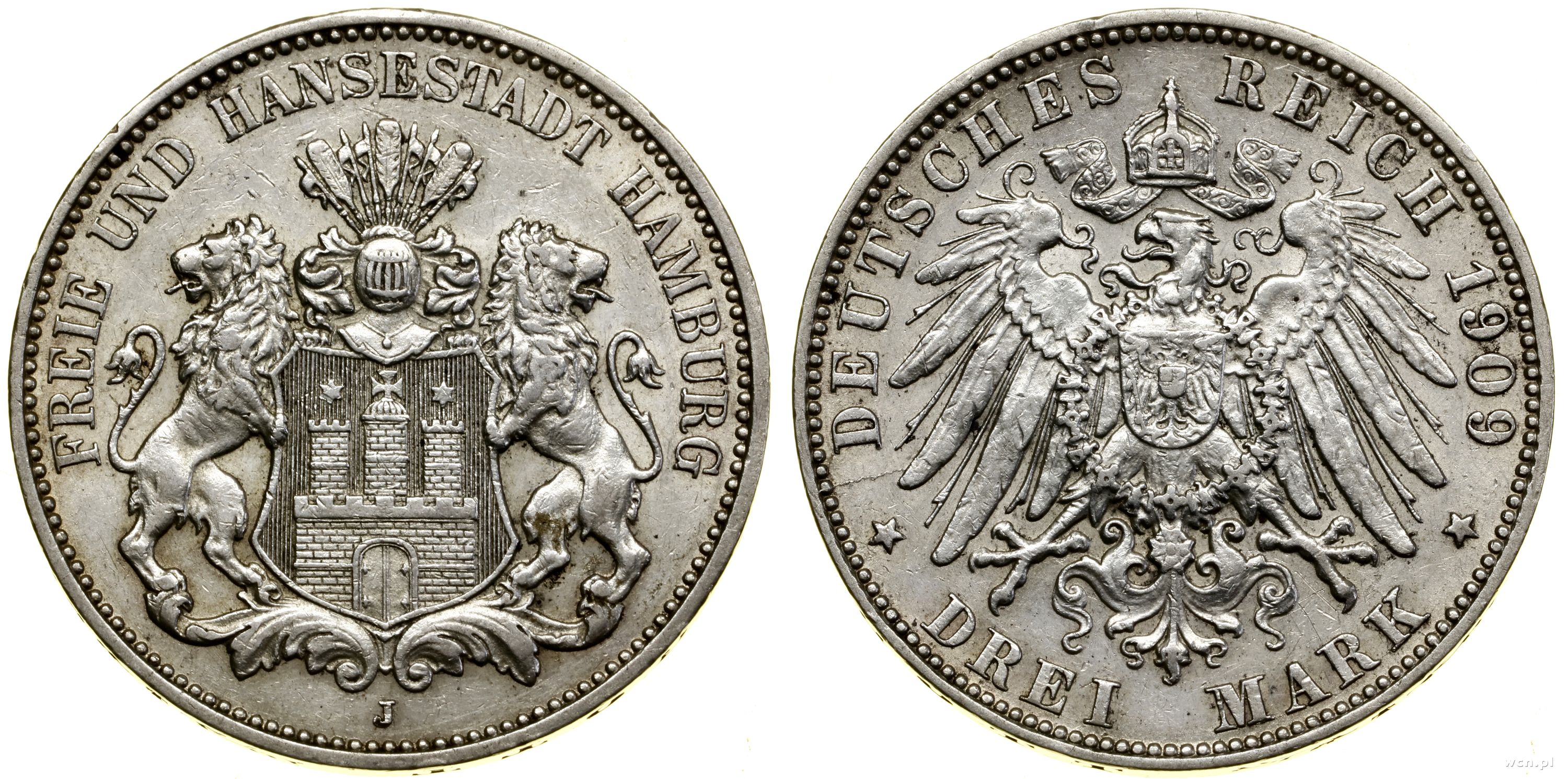 Niemcy, 3 marki, 1909 J