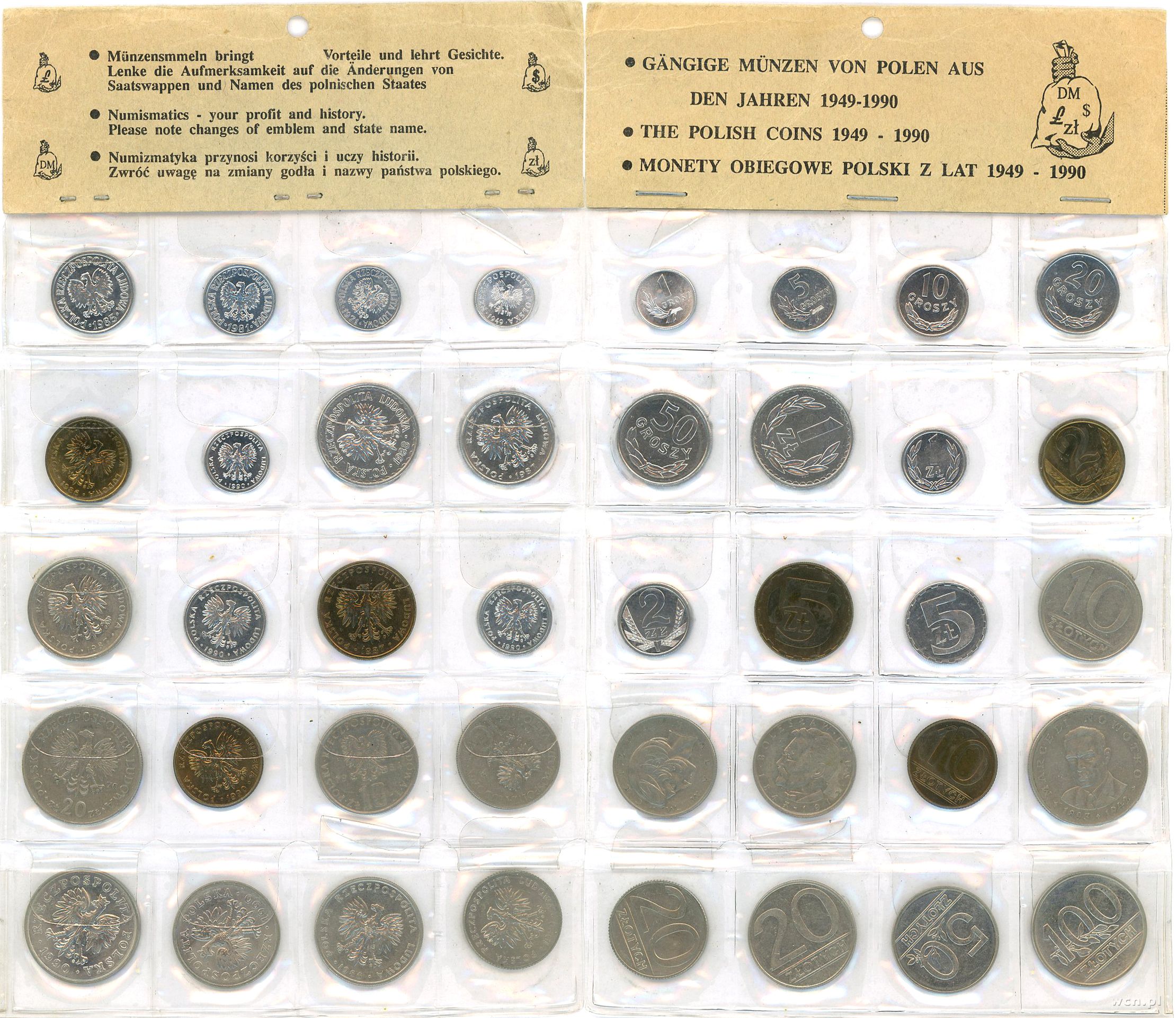 Polska, zestaw monet obiegowych, 1949–1990