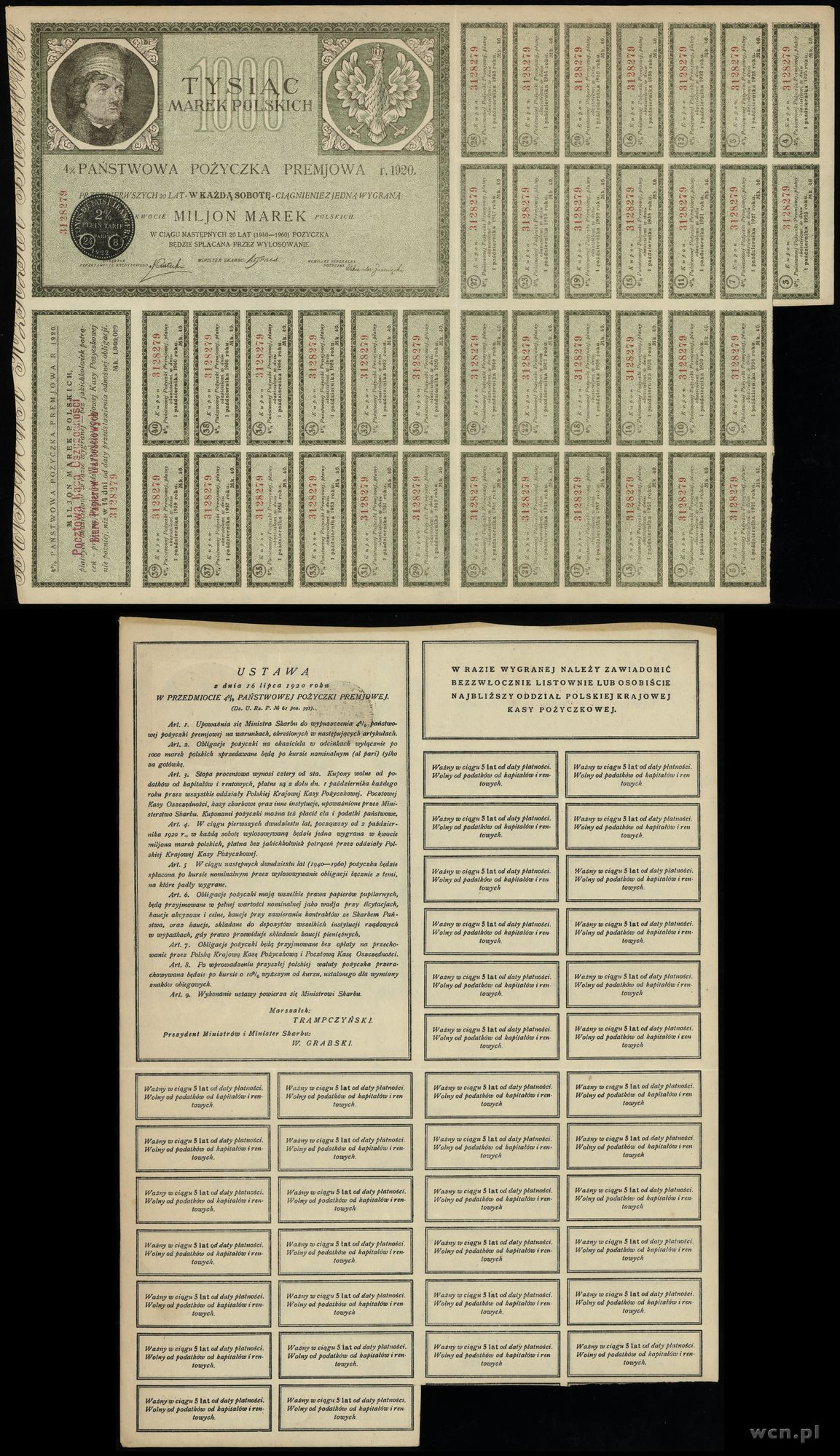 Polska, obligacja 4% Państwowej Pożyczki Premiowej na 1.000 marek polskich, 1920