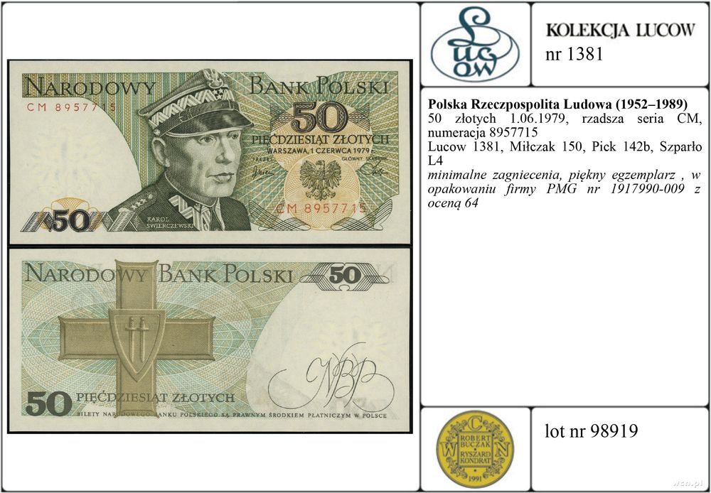 | Opis: | Polska - Polska Rzeczpospolita Ludowa (1952–1989), 50 złotych, 1.06.1979, rzadsza seria CM, numeracja 8957715 |