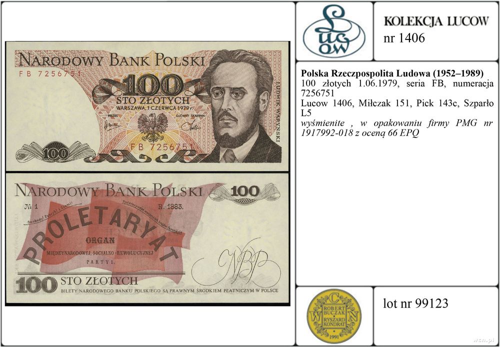 | Opis: | Polska - Polska Rzeczpospolita Ludowa (1952–1989), 100 złotych, 1.06.1979, seria FB, numeracja 7256751 |