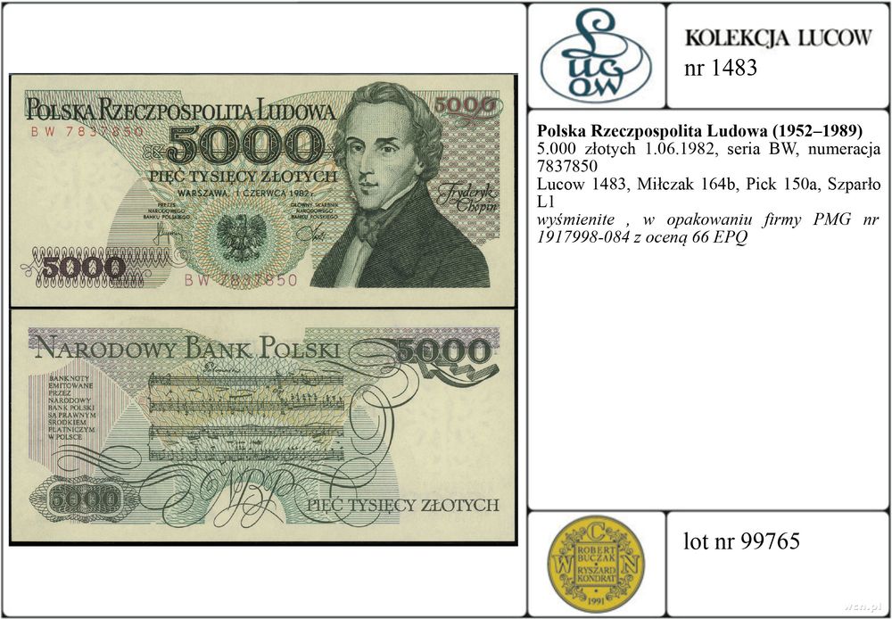 | Literatura: | Lucow 1483, Miłczak 164b, Pick 150a, Szparło L1 |