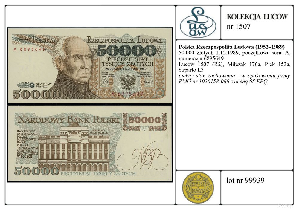 | Opis: | Polska - Polska Rzeczpospolita Ludowa (1952–1989), 50.000 złotych, 1.12.1989, początkowa seria A, numeracja 6895649 |