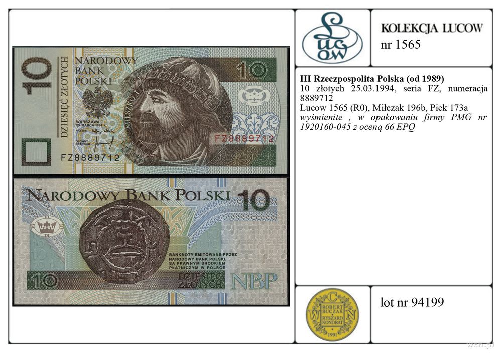 | Literatura: | Lucow 1565 (R0), Miłczak 196b, Pick 173a |