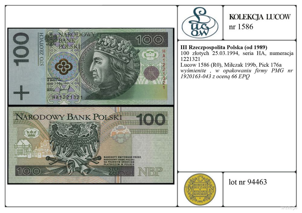 | Literatura: | Lucow 1586 (R0), Miłczak 199b, Pick 176a |