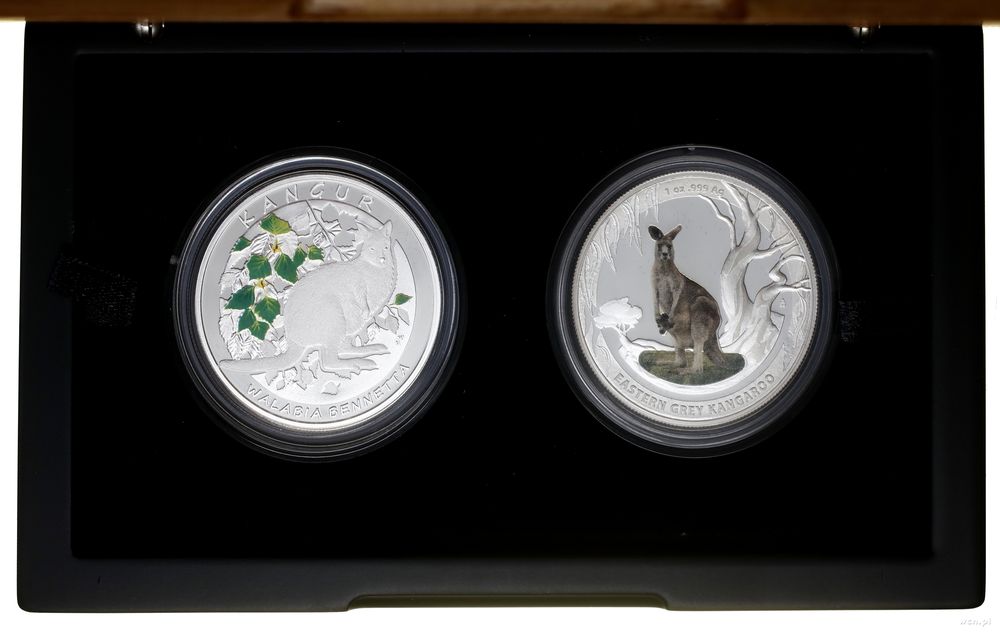 | Dodatkowe informacje: | srebro próby 999, 2 x 1 uncja, stemple lustrzane, monety w plastikowych kapslach i eleganckim pudełku z certyfikatem nr 0004732, nakład 10.000 sztuk |