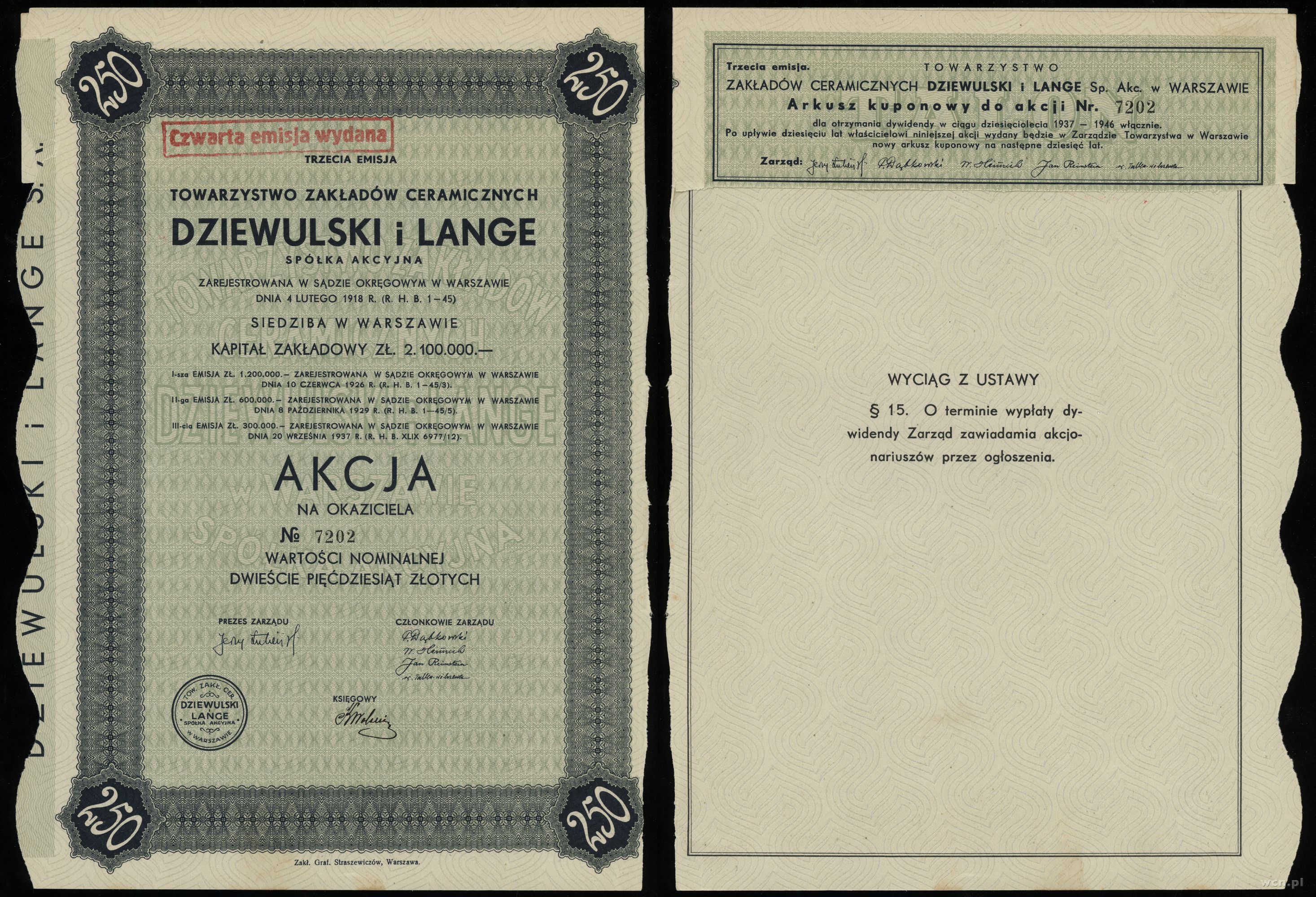 trzecia emisja, numeracja 7202, bez kuponów | I- |