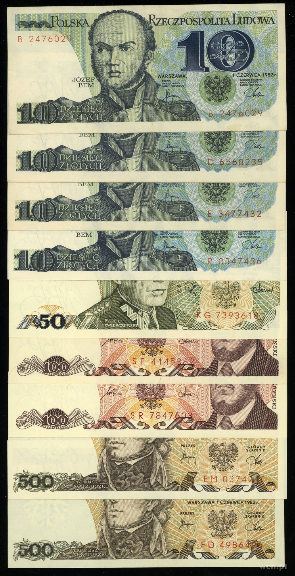 1) 5 x 10 złotych 1982 serie: A, B, D, E, R 2) 2 x 50 zło... | I/II- |