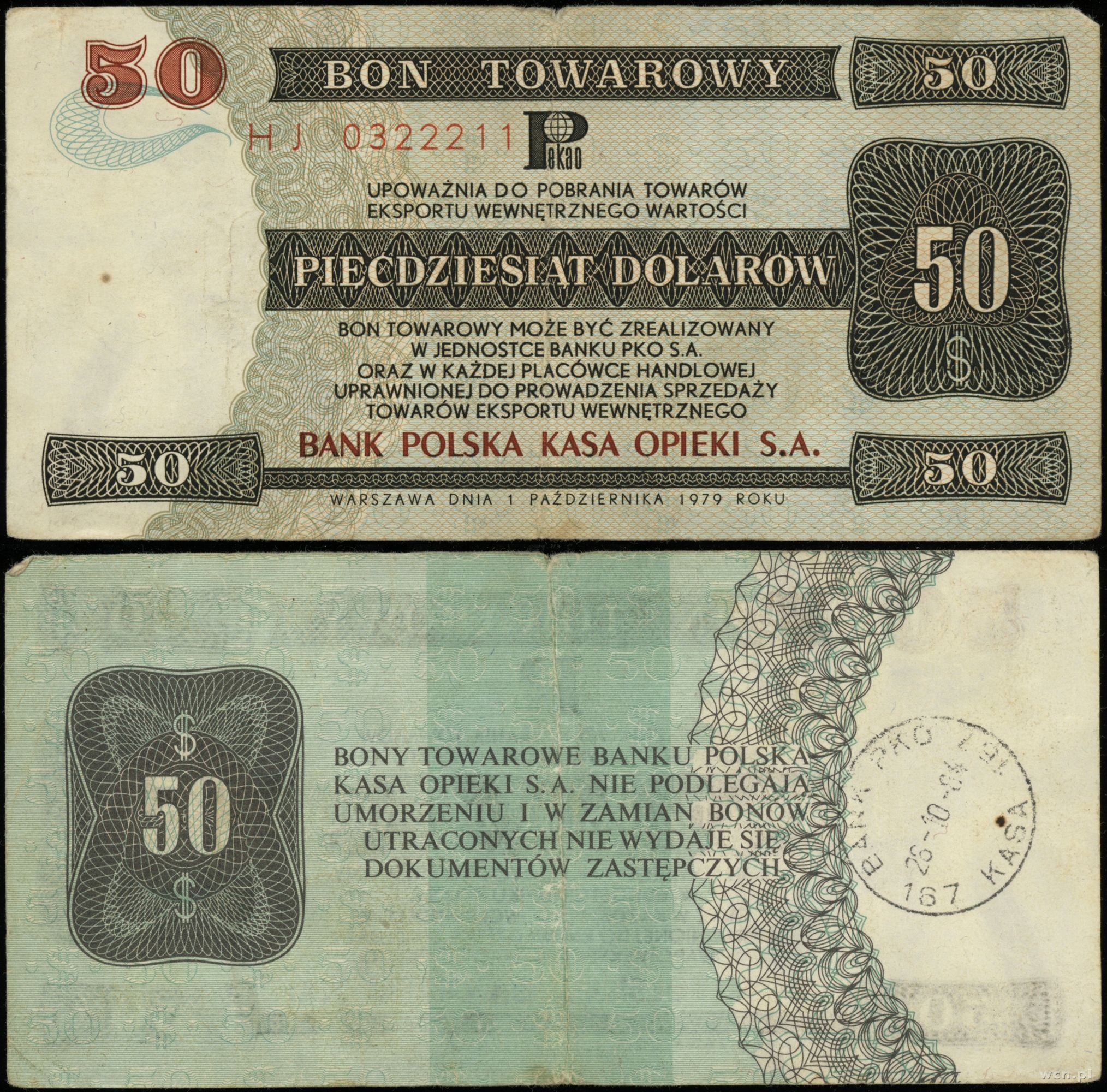 Polska, bon na 50 dolarów, 1.10.1979
