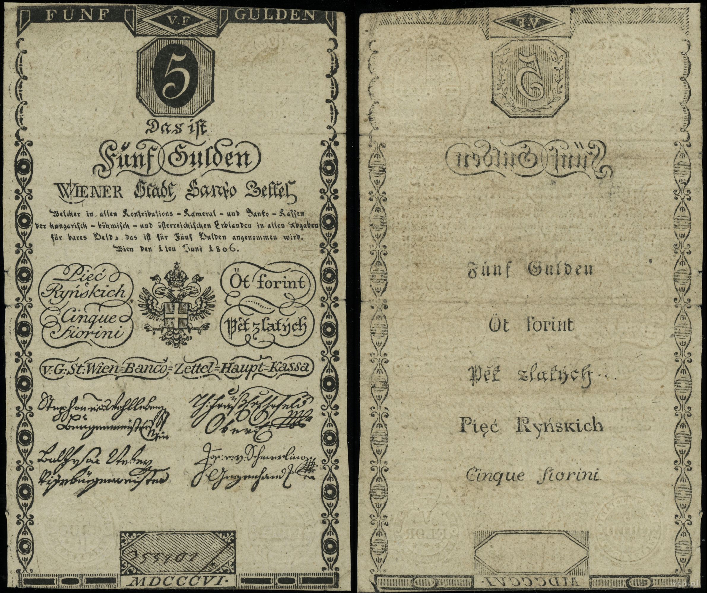 Austria, 5 guldenów (5 ryńskich), 1.06.1806