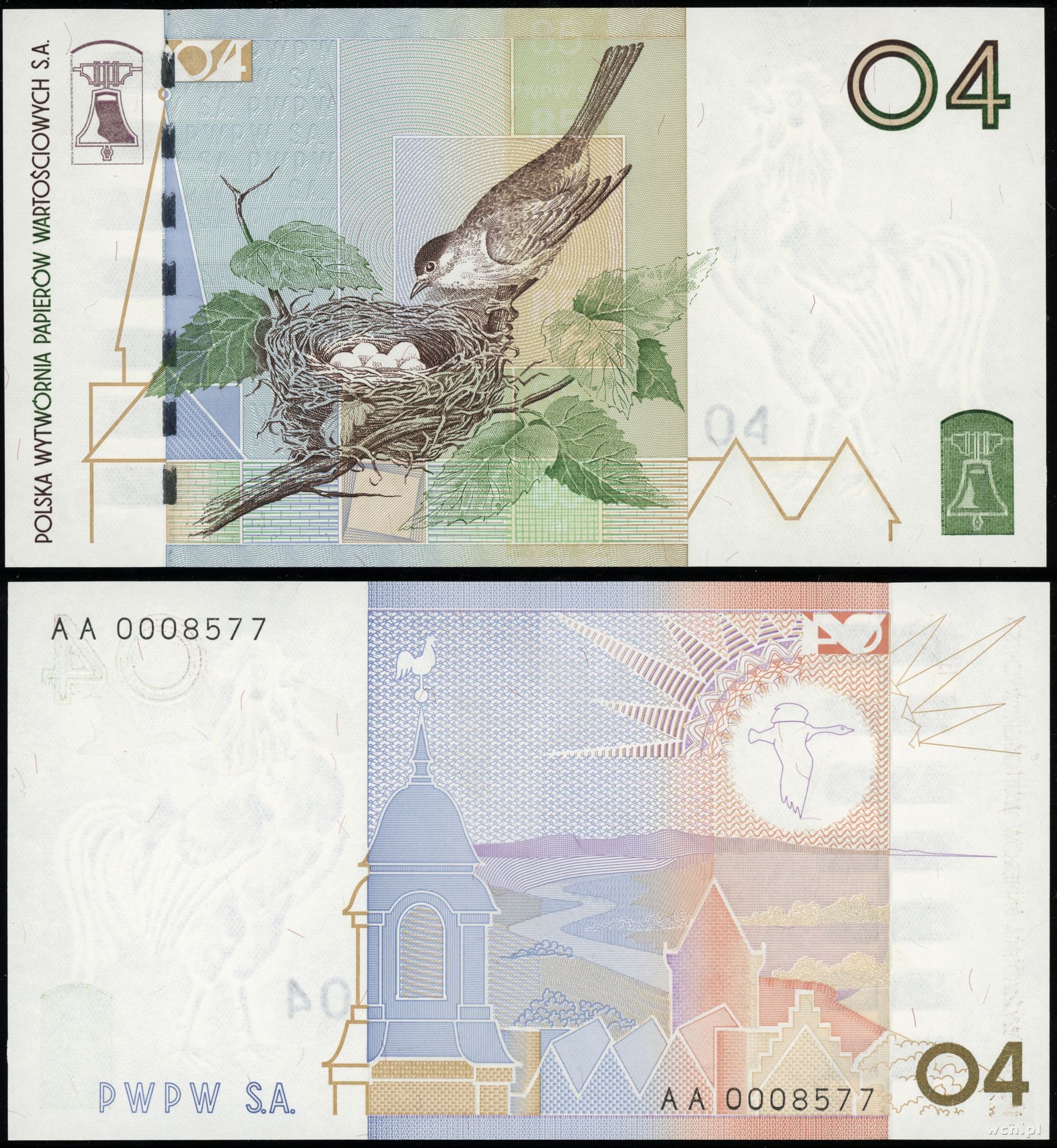 Polska, banknot testowy PWPW - 04 Pokrzewka czarnołbista, (2004)