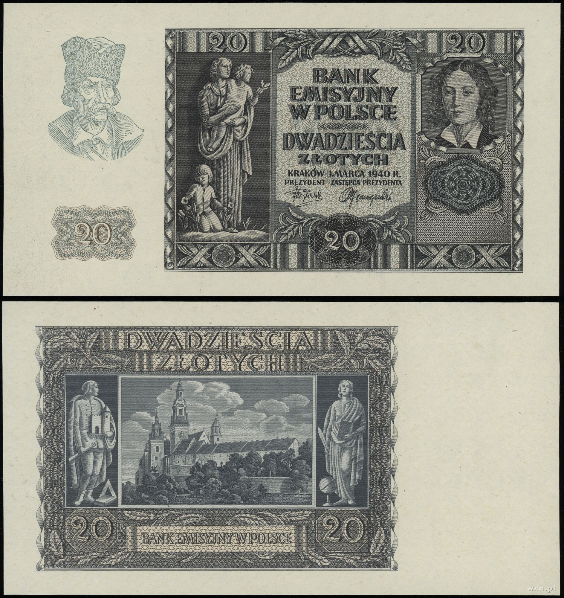 Polska, niedokończony druk 20 złotych, 1.03.1940