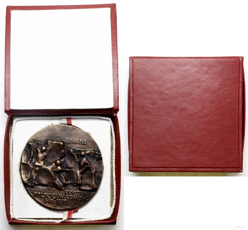 | Opis: | Polska - Polska Rzeczpospolita Ludowa (1952–1989), 40-lecie obrony Poczty Polskiej w Gdańsku, 1979, Aw: Wizerunek pomnika upamiętniającego obrońców Poczty Polskiej w Gdańsku, wyżej OBRONA, niżej POCZTY / POLSKIEJ W GDAŃSKU / 1 • IX • 1939, Rw: Fragment Pomnika Obrońców Poczty Polskiej w Gdańsku, 1 • IX • 1939 - XL • LECIE OBRONY POCZTY POLSKIEJ W GDAŃSKU |
