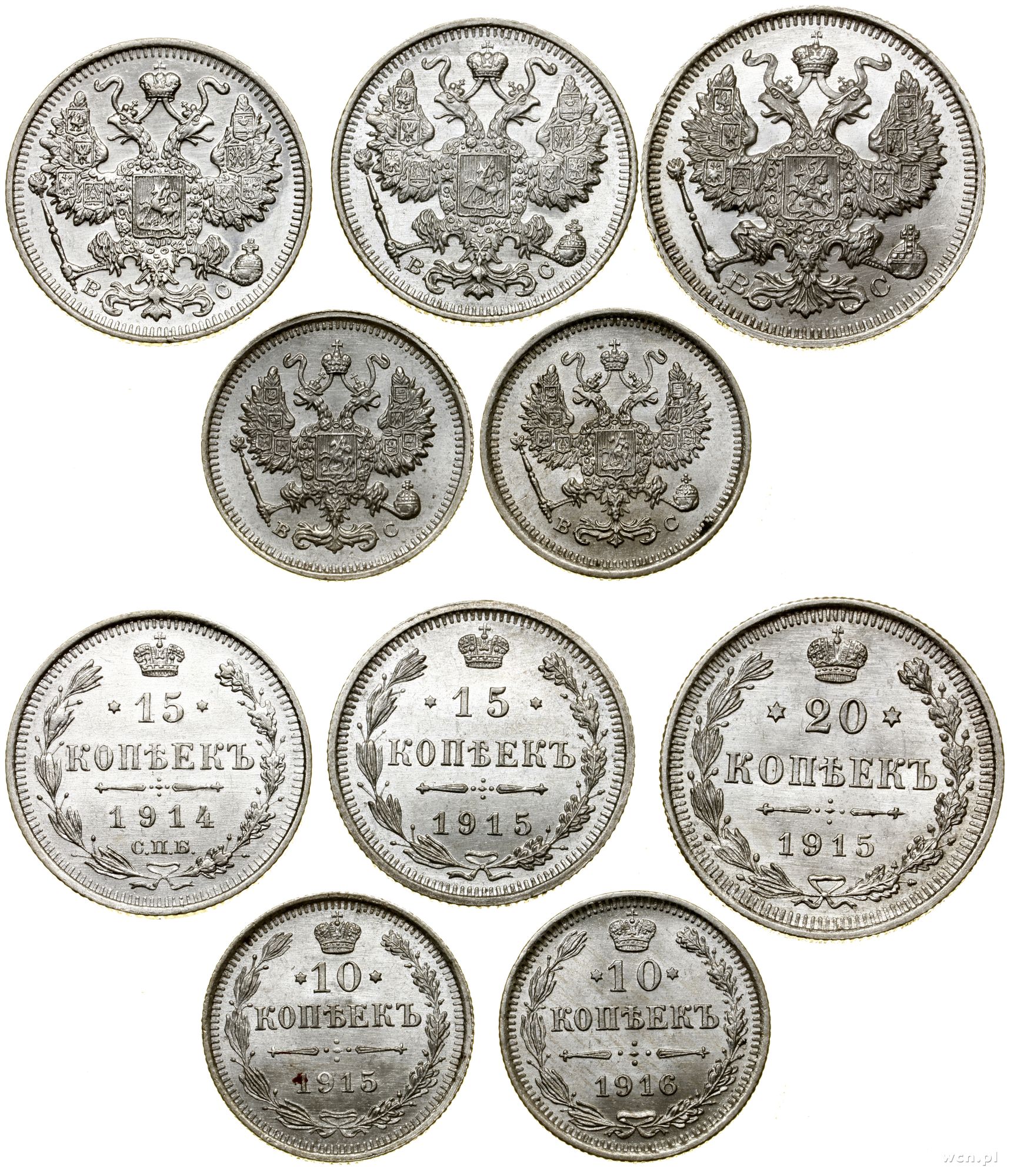 Rosja, zestaw 5 monet, 1914–1916