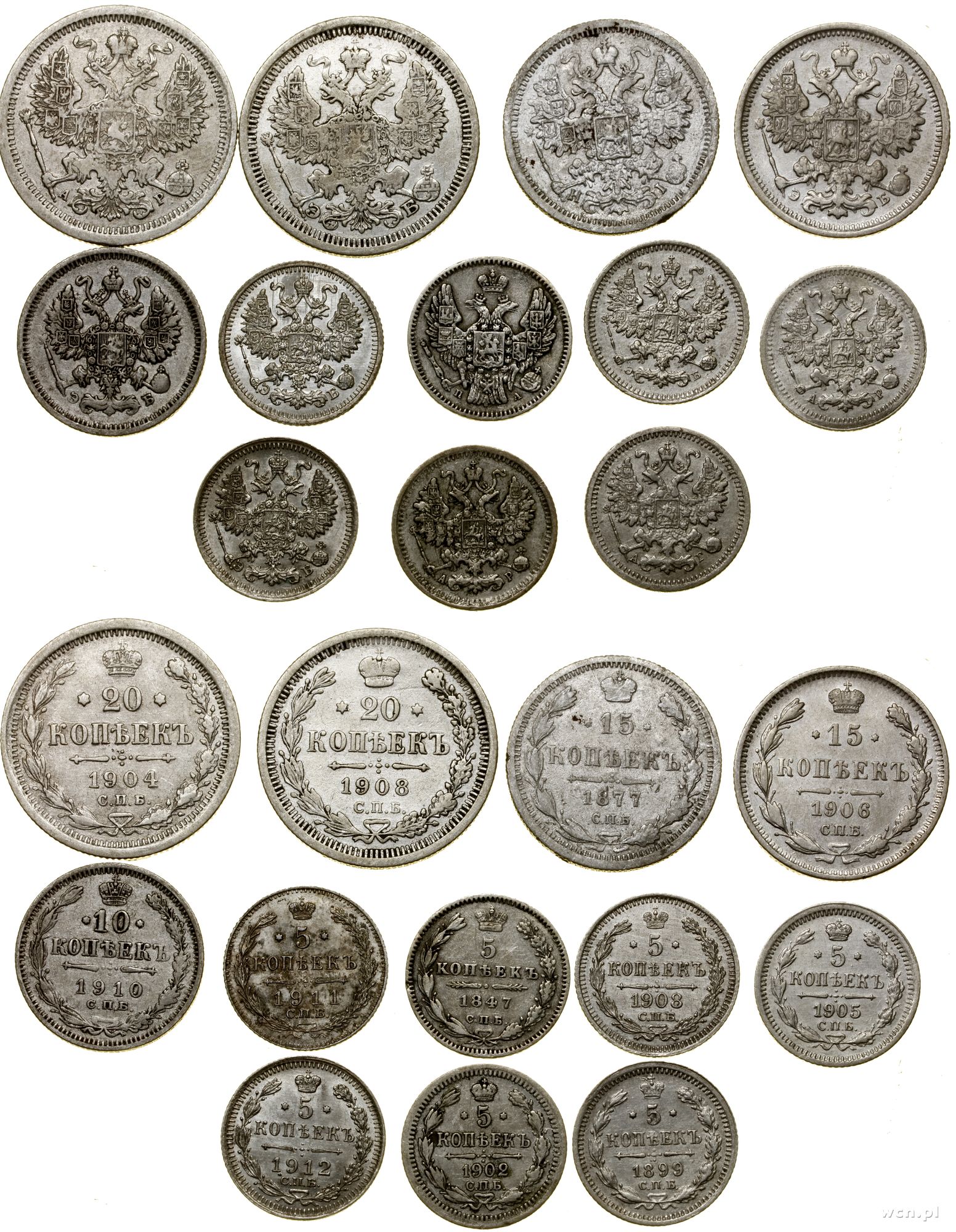 5 kopiejek roczniki: 1847, 1899, 1902, 1905, 1908, 1911, ... | I/III |