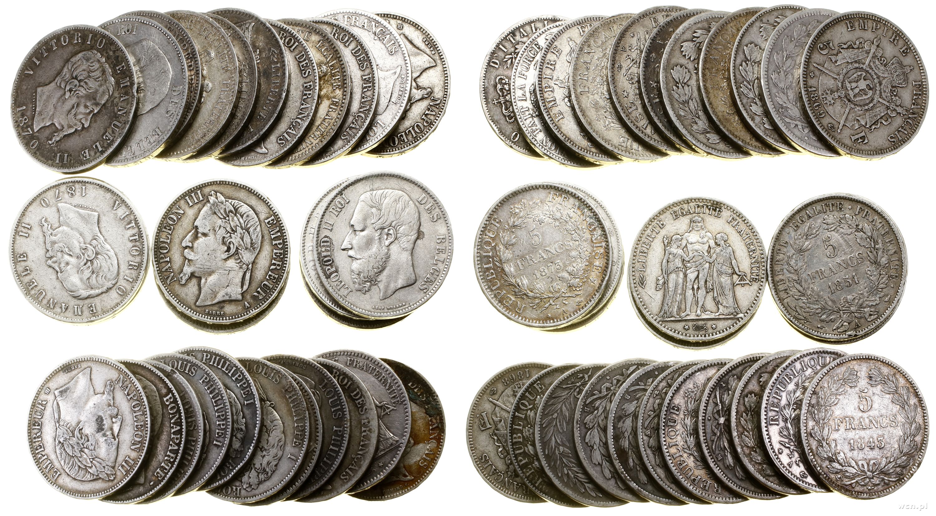 zestaw 30 x 5 franków XIX wiek, różne roczniki i kraje