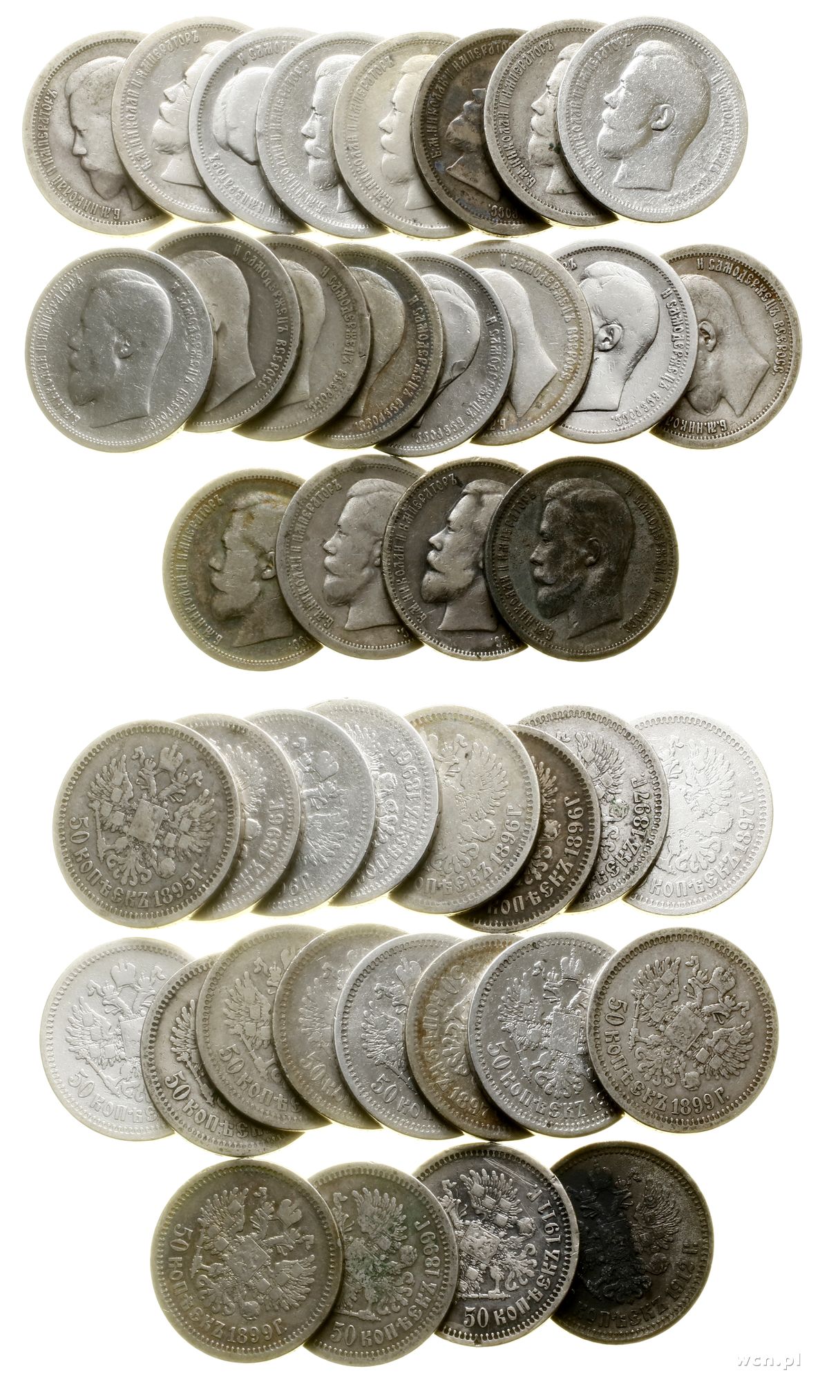 Rosja, zestaw 20 x 50 kopiejek, roczniki 1895–1899 i 1911–1912