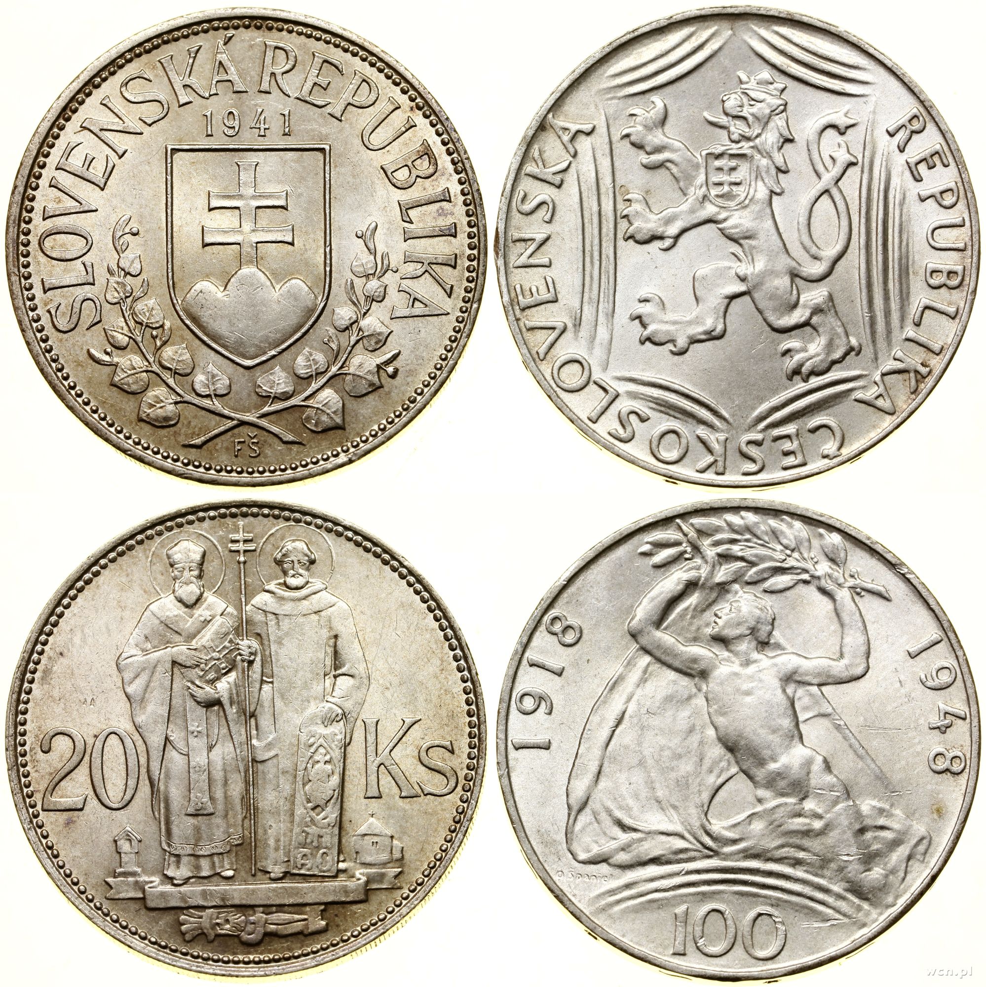 Czechosłowacja, zestaw: 20 koron i 100 koron, 1941–1948