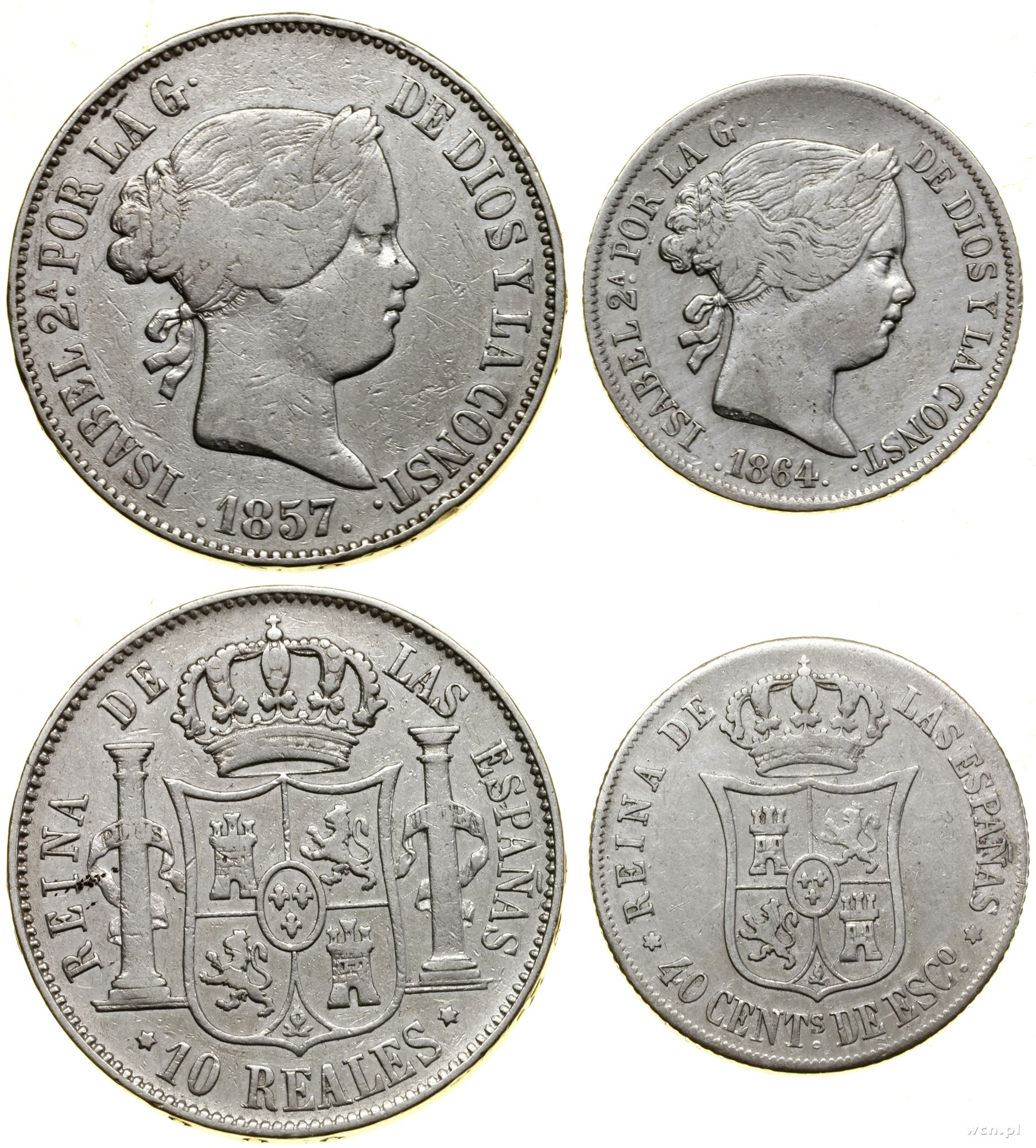 w skład zestawu wchodzi: 40 centymów 1864 (Madryt), 10 re... | III |